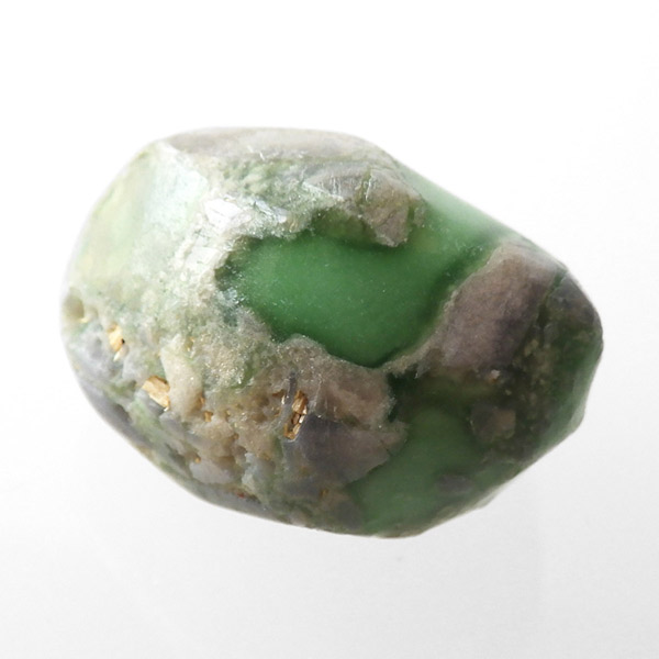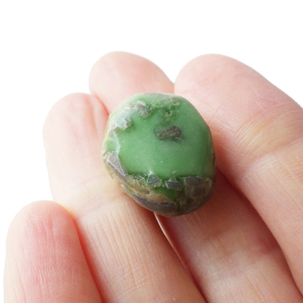 アメリカ・ユタ州産のバリサイトのタンブルです。バリサイトは、グリーンを基調に天然の模様が見られる石で、色合いも優しいパステルグリーンから、色鮮やかなグリーンまで様々です。アメリカのユタ山脈から採掘される事から「ユタライト・ユタターコイズ・ユタトルコ」と呼ぶこともあるようです。緑色に黒や白のまだら模様が入る事が多く、品質の良いものになるとクリソプレーズや翡翠のような美しい緑色をしております。