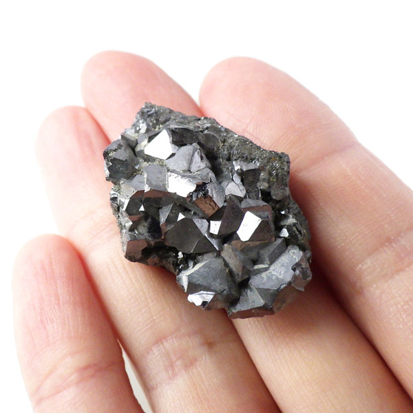 ブルガリア産のガレーナ原石です。ガレーナの和名は「方鉛鉱」。その名の通り立方体状に結晶する石で、鉛の鉱石としては他にはないと言われています。工業用の鉛の原料となる石で、その中でもとびきり美しい物は、観賞用となります。鉛を含むため、ずっしりと重く、金属光沢のある表面が特徴です。
