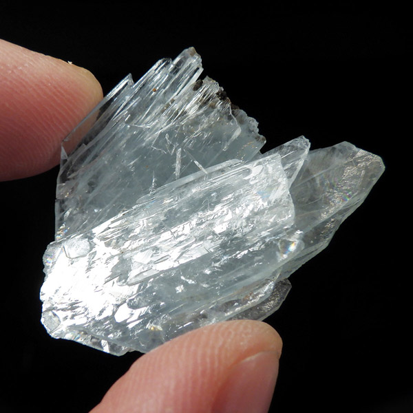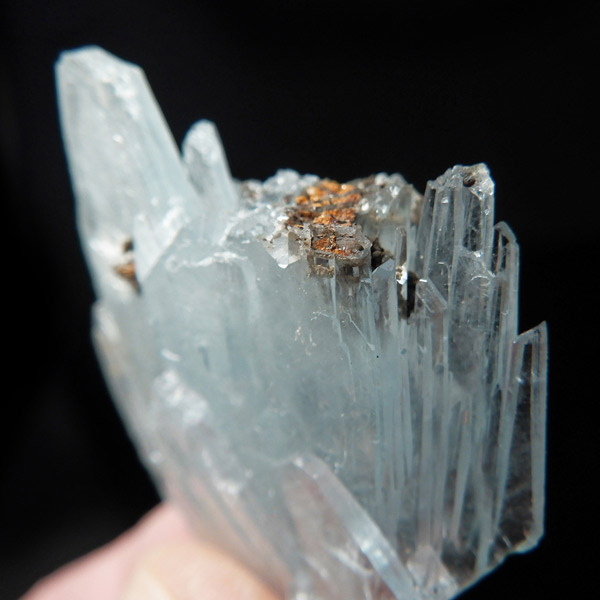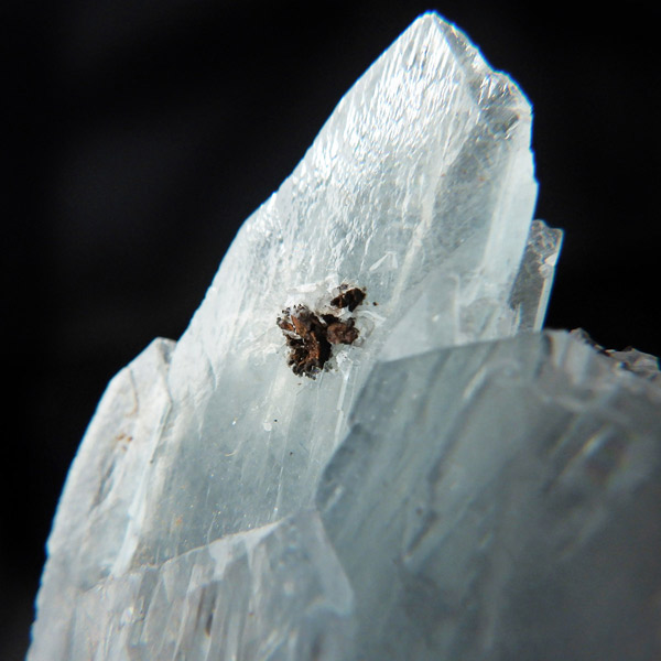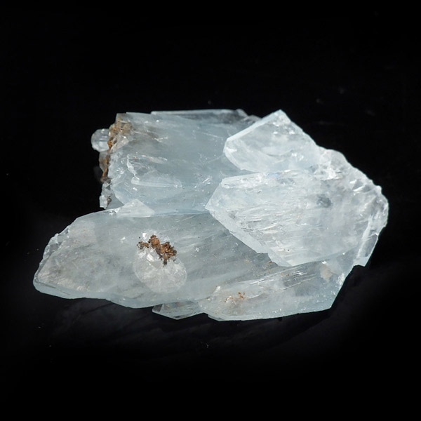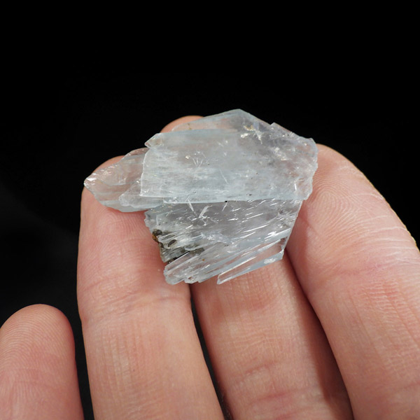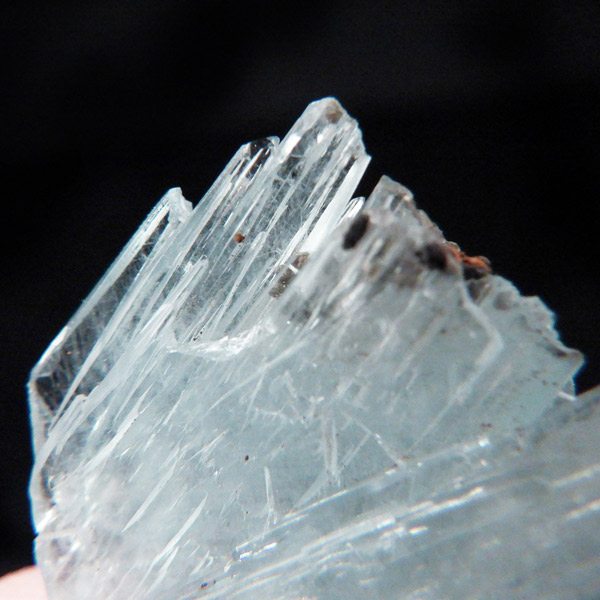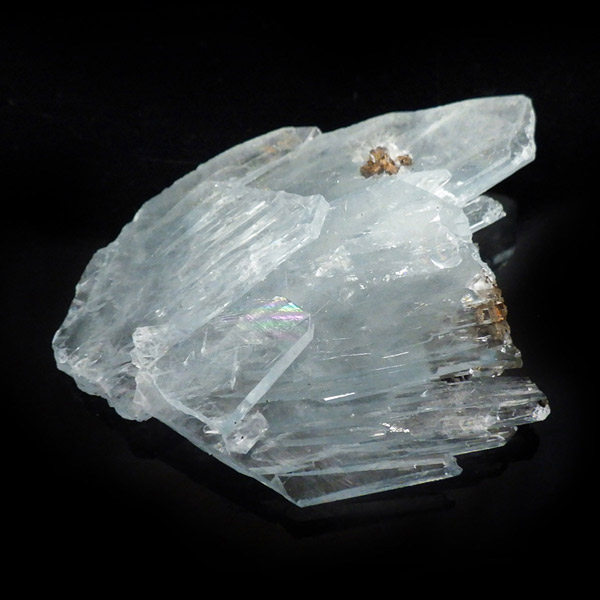 モロッコ産、ブルーバライト原石です。バライトは、ギリシャ語で「重い」を意味する「バリュス」にちなんで名付けられました。そのとおり、見た目とは違い、実際持ってみるとけっこう重みを感じます。無色、白色、黄色、青色などのバリエーションがある中で、品質の良いブルーのバライトは貴重です。板状の結晶が幾層にも重なっており、透き通った結晶が見事です。表面は艶があり虹も見えます。硬度が低いためアクセサリーには不向きですが、アクアマリンにも勝てるような結晶の美しさを秘めています。