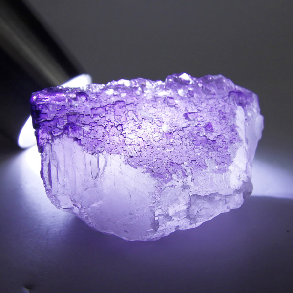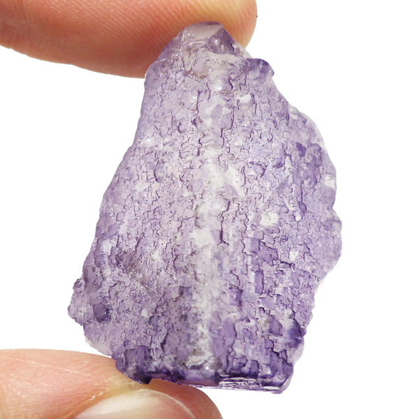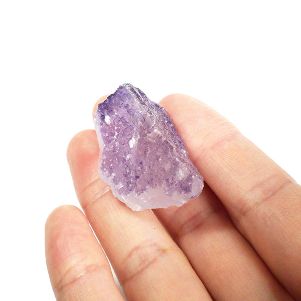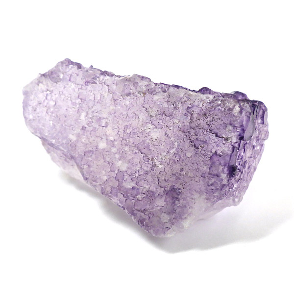 メキシコ産のパープルフローライト原石です。結晶の形が細かく、表面にびっしりと幾何学模様が刻まれています。先端に行く程、パープルが濃くなっていくのが特徴的。光にかざすと半透明で幻想的です。