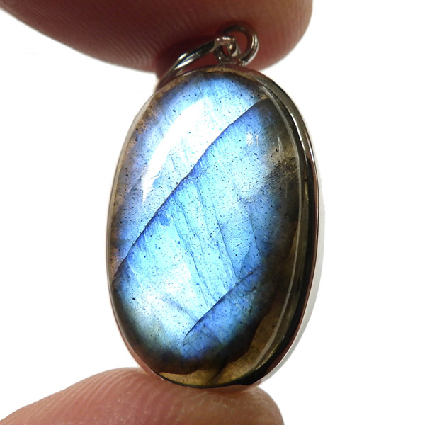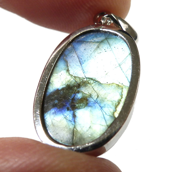 マダガスカル産ラブラドライトのペンダントトップです。ブルー系のラブラドレッセンスが見られます。よく見ると小さな内包物が星のようにキラキラと見られ、全体としてラブラドライトの大きな深みを感じます。光に透かしても透明感があり、面白いです。石の加工はオーバル形に艶やかな研磨を施しております。どの角度から見てもラブラドレッセンスがしっかりと輝き、表情の移り変わりが楽しいペンダントトップです。
