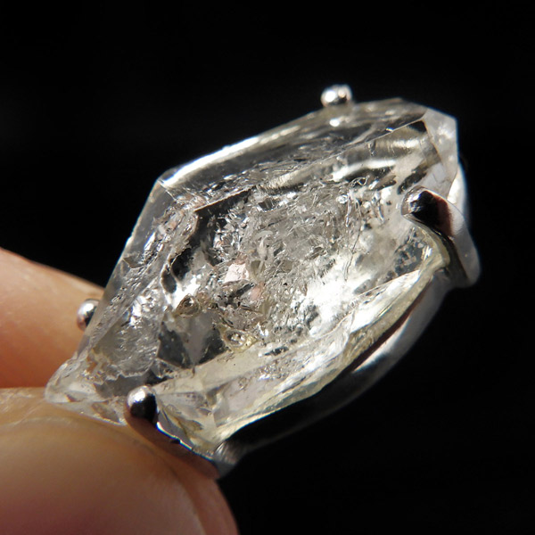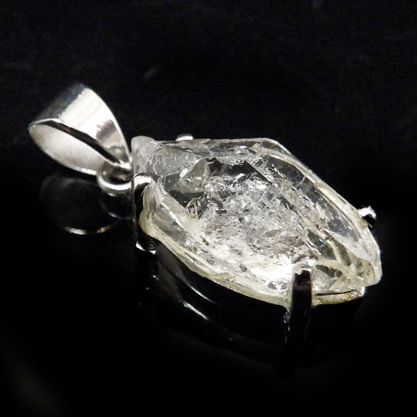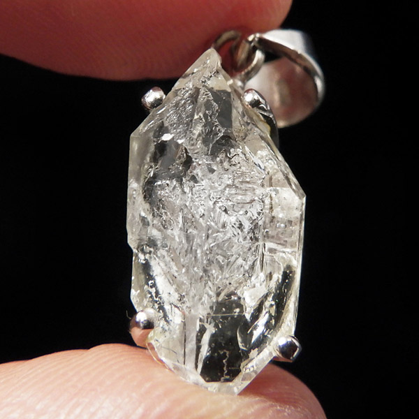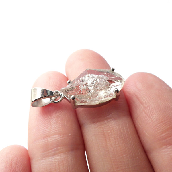 パキスタン産、エレスチャルクォーツのペンダントトップです。こちらオイルインが確認でき、ブラックライトで蛍光します。エレスチャルとは、普通に成長した整った水晶とは違い、熱水による侵食や再結晶など様々な環境の影響を受けて、長い時間をかけて複雑に成長した特殊な水晶のことで、内部に何層にもなって成長していった水晶のことです。複数の結晶から1つの結晶ができるイメージです。透明度が高く、ピュアな結晶が大変魅力的。エレスチャル独特の水晶の結晶形をそのままペンダントトップに施し、身に着けて頂けるアイテムです。