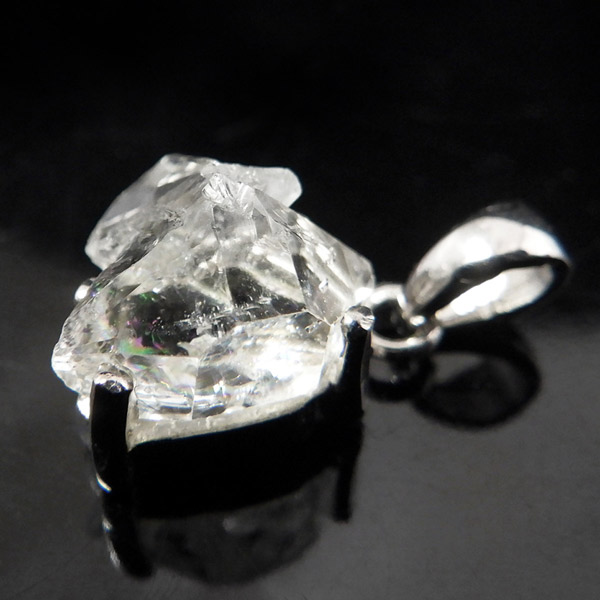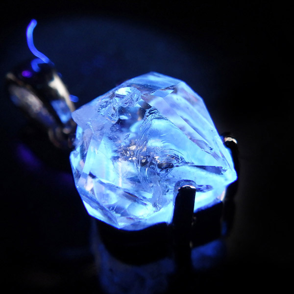 パキスタン産、エレスチャルクォーツのペンダントトップです。こちらオイルインが確認でき、ブラックライトで蛍光します。エレスチャルとは、普通に成長した整った水晶とは違い、熱水による侵食や再結晶など様々な環境の影響を受けて、長い時間をかけて複雑に成長した特殊な水晶のことで、内部に何層にもなって成長していった水晶のことです。複数の結晶から1つの結晶ができるイメージです。透明度が高く、ピュアな結晶が大変魅力的。エレスチャル独特の水晶の結晶形をそのままペンダントトップに施し、身に着けて頂けるアイテムです。