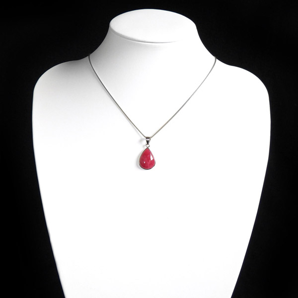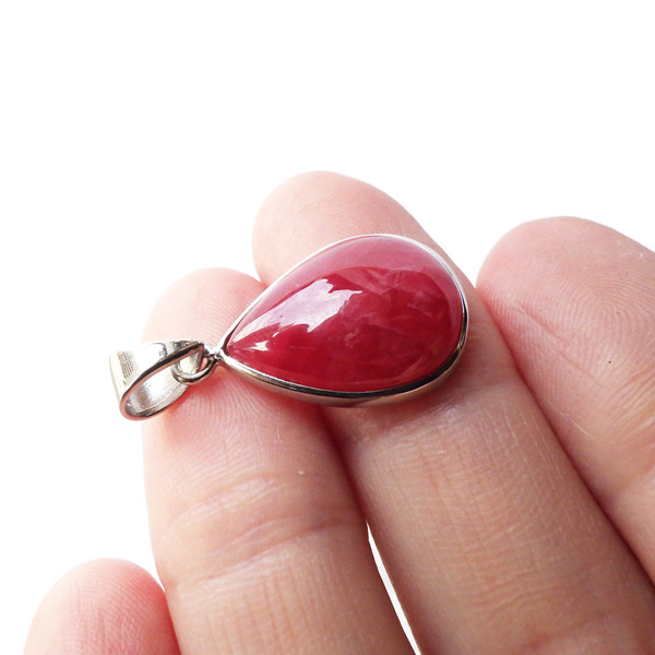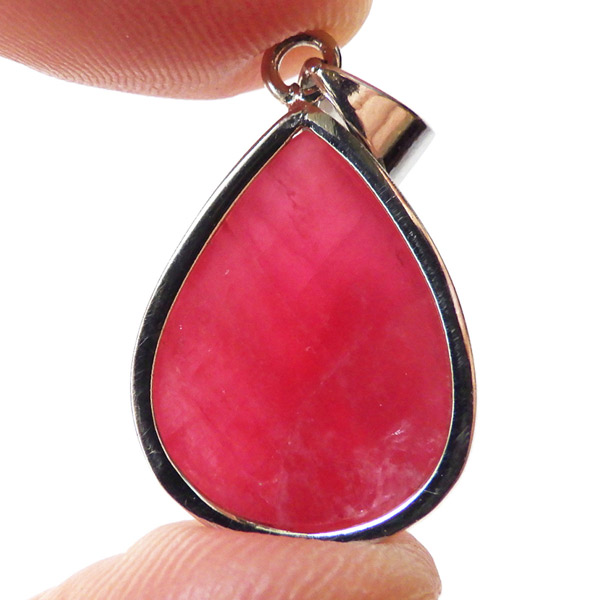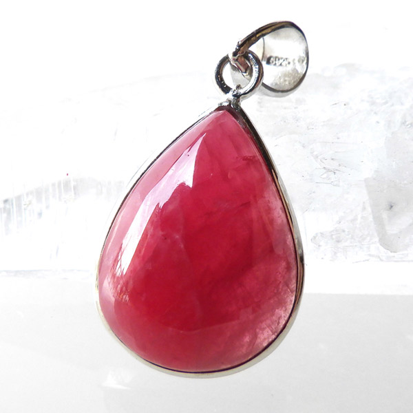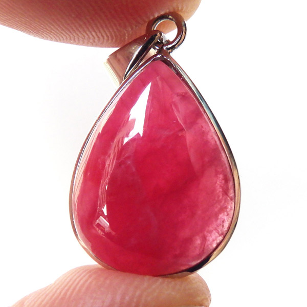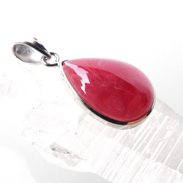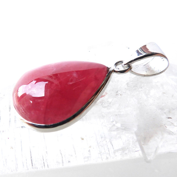 ロシア産インペリアルロードナイトのペンダントトップです。和名は薔薇輝石。可憐なバラを連想させる高貴な紅色が人気のロードナイトですが、バラの花のような良質なものは「インペリアルロードナイト」と呼ばれ、特別視されております。ロードナイトは二酸化マンガンを多く含む場合は黒い筋状の層が見られますがもちろんそれも見られません。赤く透明度の高い、まさにインペリアルロードナイト。存在感が抜群にありますので、かわいく胸元を飾ってくれそうです。