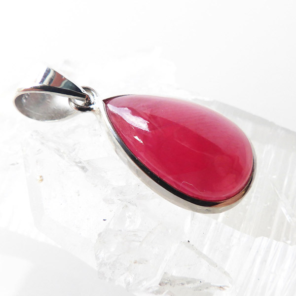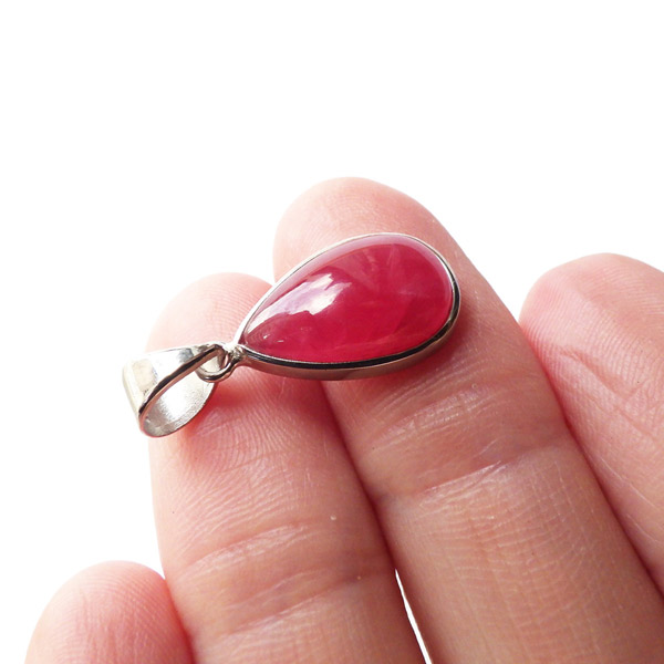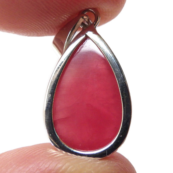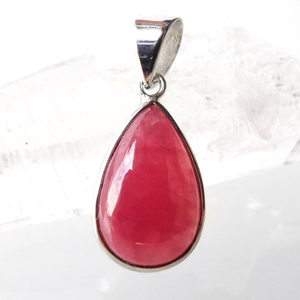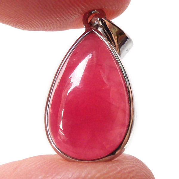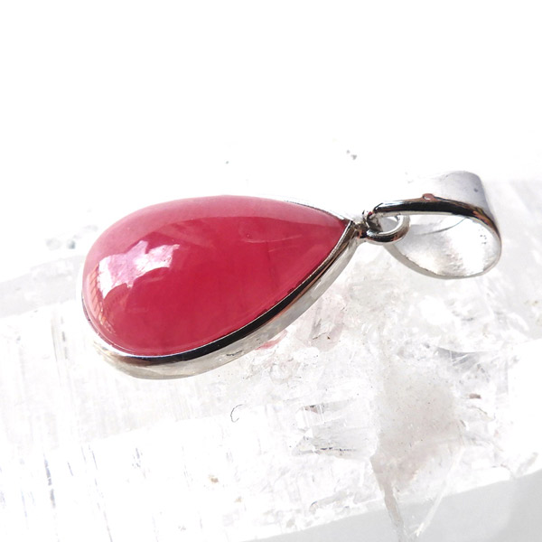 ロシア産インペリアルロードナイトのペンダントトップです。和名は薔薇輝石。可憐なバラを連想させる高貴な紅色が人気のロードナイトですが、バラの花のような良質なものは「インペリアルロードナイト」と呼ばれ、特別視されております。ロードナイトは二酸化マンガンを多く含む場合は黒い筋状の層が見られますがもちろんそれも見られません。赤く透明度の高い、まさにインペリアルロードナイト。存在感が抜群にありますので、かわいく胸元を飾ってくれそうです。