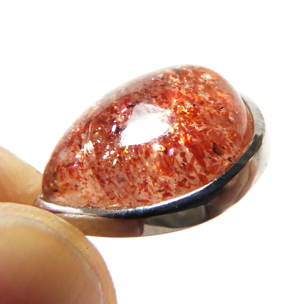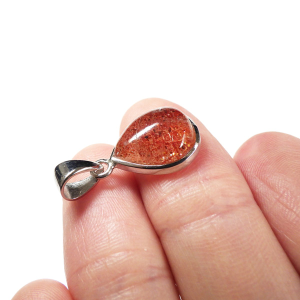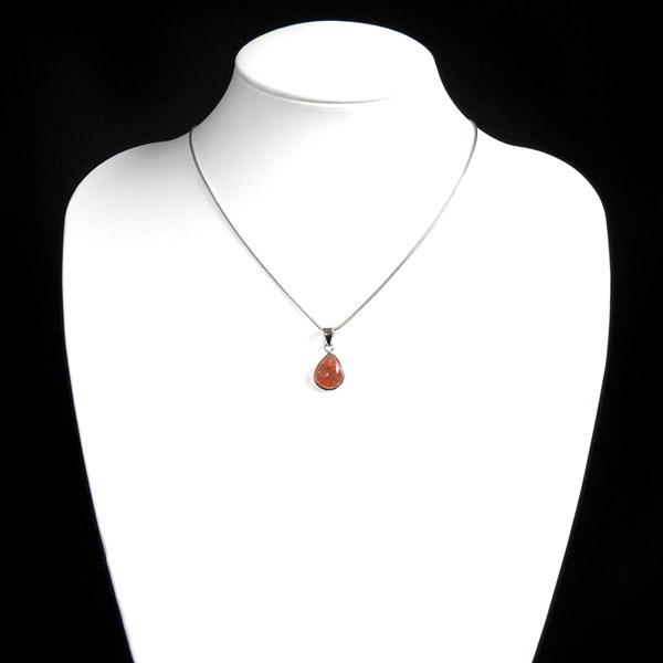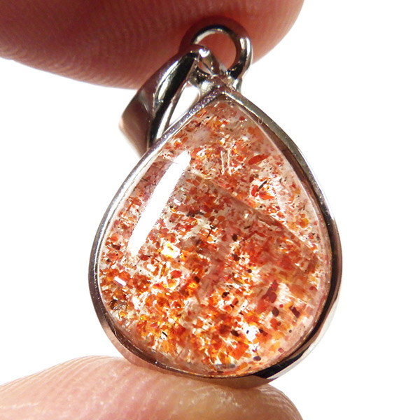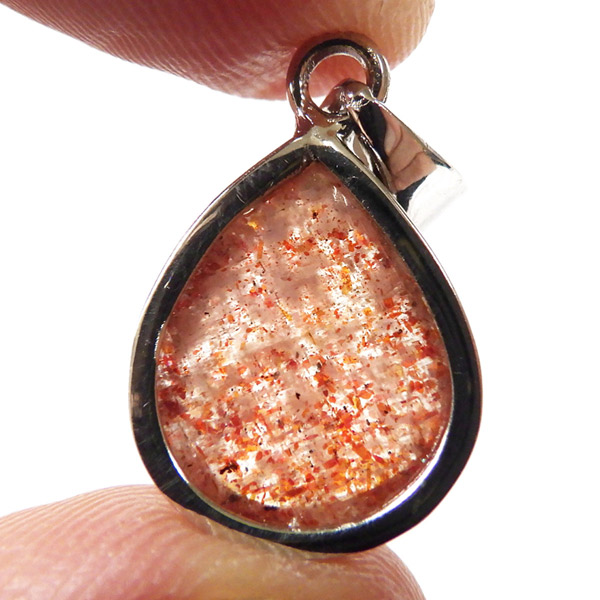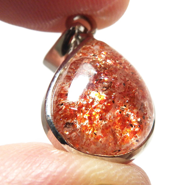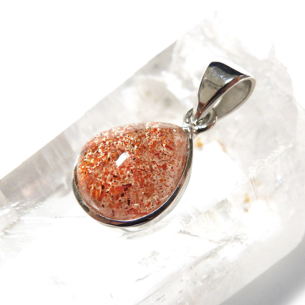 インド産のサンストーン、ペンダントトップです。 灼熱の太陽を彷彿とするオレンジ色のキラキラした石、 それがサンストーンです。太陽のように表面が輝き、キメの細かいマイカのキラキラとした光が魅力的に現れます。 ぷっくりしずく形で可愛らしいペンダントトップです。