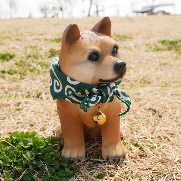 かわいい小柴犬の置物です。大きい柴犬もかわいいけれど、やっぱり小さな小柴犬が好き! 犬も騙される!?程のリアルな造り! 唐草模様の風呂敷と鈴の首輪も付いています。全部で4種類ございます。