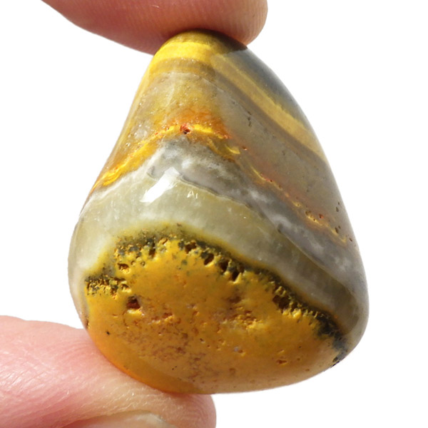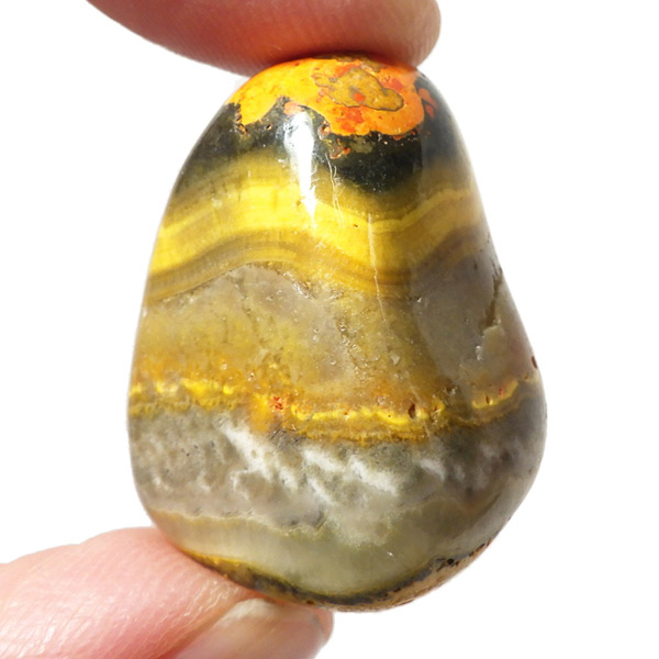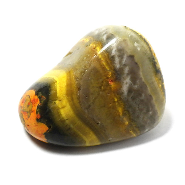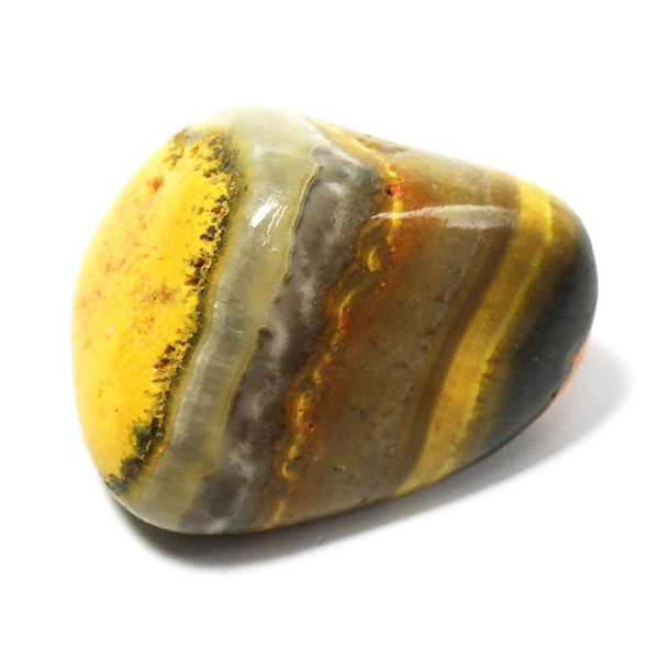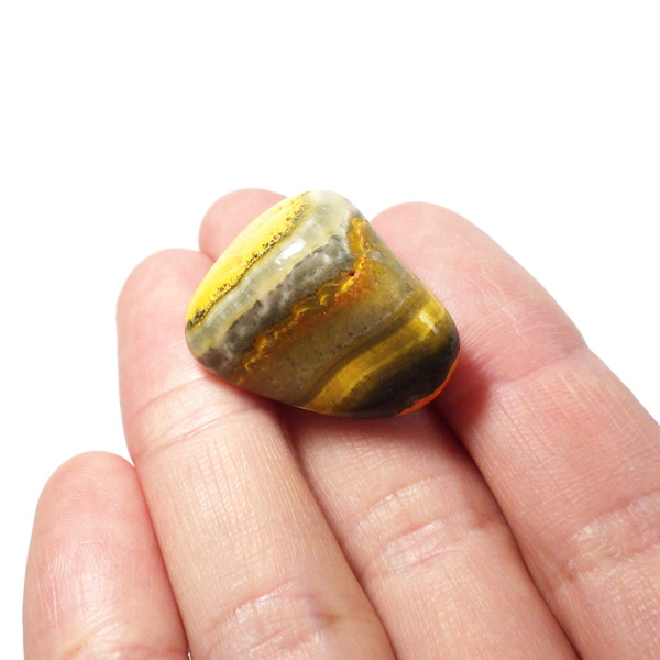 インドネシア産のバンブルビージャスパー、タンブルです。発色とグラデーションが美しいものを選りすぐりました。バンブルビージャスパー、別名エクリプスとも呼ばれます。「バンブルビー」とは、ミツバチの一種のマルハナバチのことで、黒地に蛍光色のイエローの模様からこの名前がつけられました。また、「エクリプス」とは、皆既日食を意味しています。主に硫黄がビビッドな発色を生み出すと言われ、クォーツと他の微量ミネラルで構成されています。