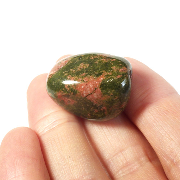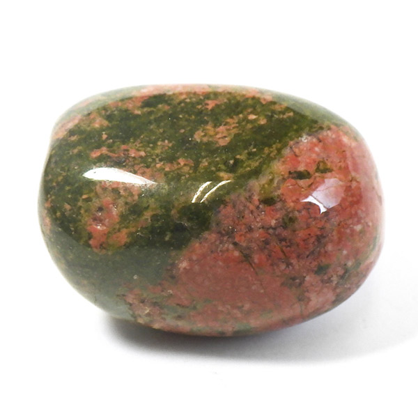 エピドート(緑簾石)、クローライト(緑泥石)、フェルドスパー(長石)、クォーツ(石英)の混合石で、アメリカのノースカロライナ州のユナカ山地が原産地で、地名に因んで名付けられました。変質して出来た火成岩で、緑色が強いもの、ピンクが多めに入ったものなど個体差があり、その独特な色合いと模様がおもしろいです。