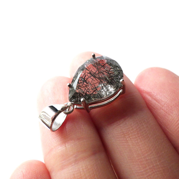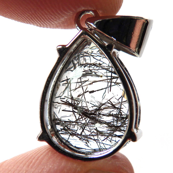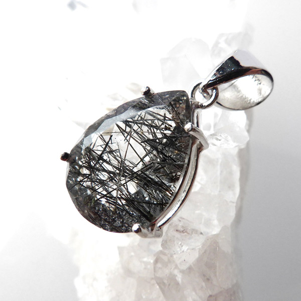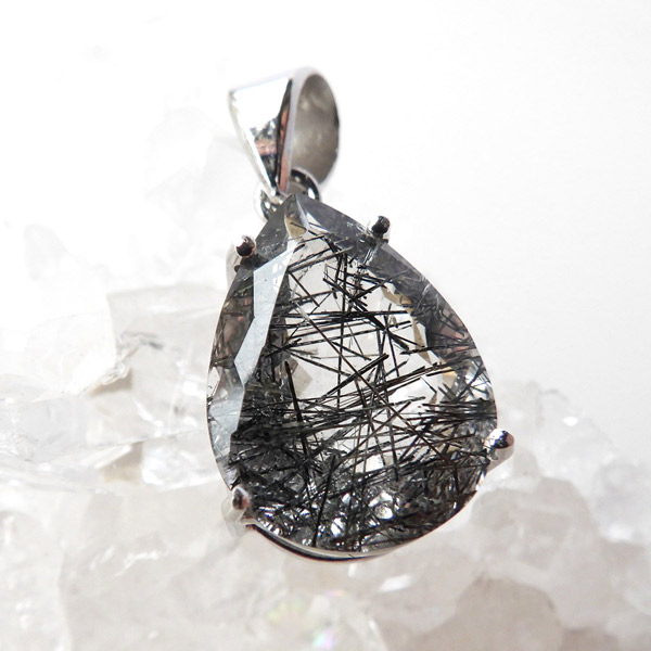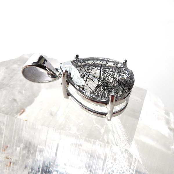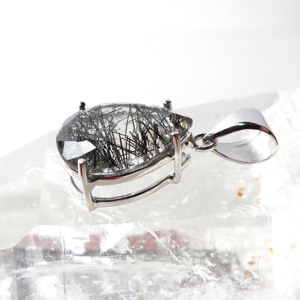 ブラジル産のブラックトルマリンインクォーツ、ペンダントトップです。見た目が似ていることから流通名でブラックルチルクォーツとも呼ばれていますが鉱物的にはルチルではありません。透明度の高いクォーツ内にブラックトルマリンの黒の針が縦横無尽にしっかりときれいに入っています。