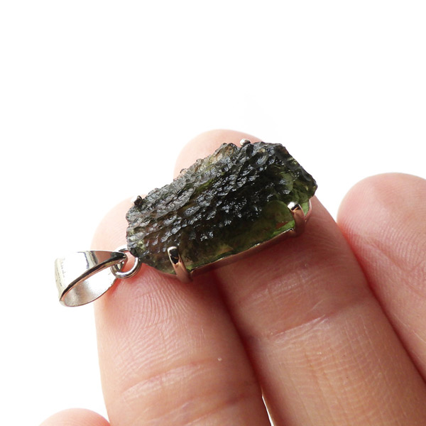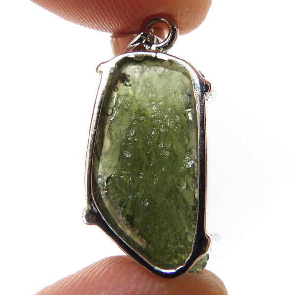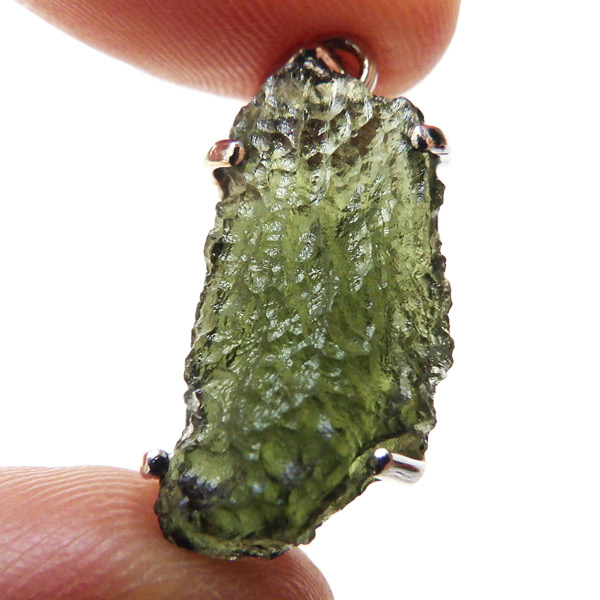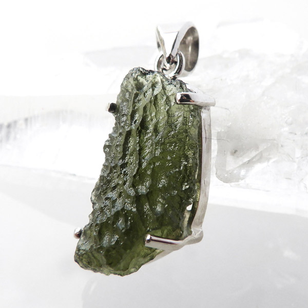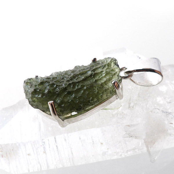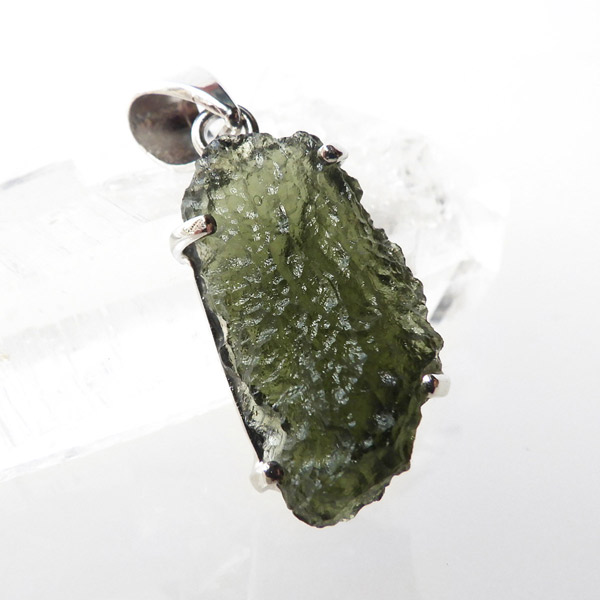 チェコ産のモルダバイト、ペンダントトップです。モルダバイトは、隕石が落下した際に起こる膨大な熱量と衝撃によって、地上の物質と隕石の成分が融解し形成された天然ガラス、テクタイトの一種とされています。原石をそのままにペンダントトップに仕上げました。確かな品質のモルダバイトを存分にご堪能下さい。