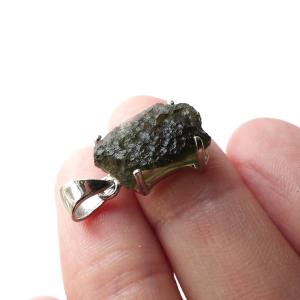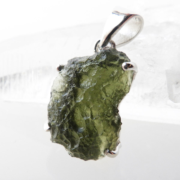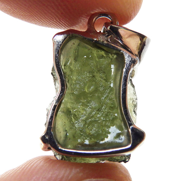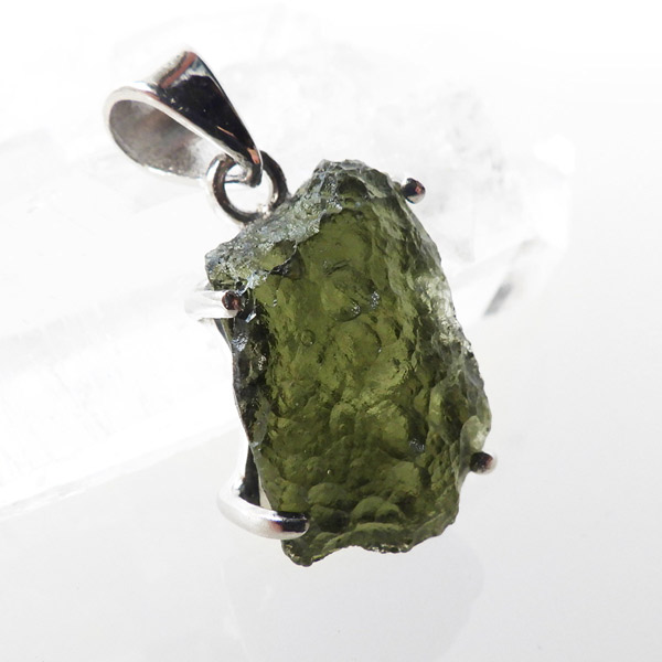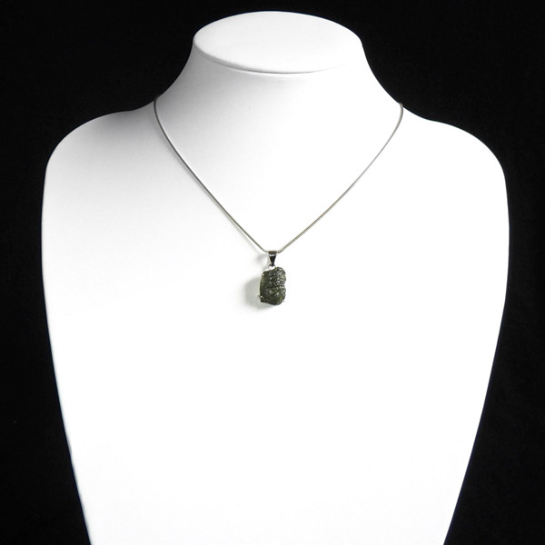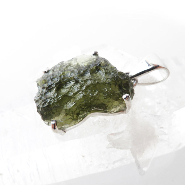 チェコ産のモルダバイト、ペンダントトップです。モルダバイトは、隕石が落下した際に起こる膨大な熱量と衝撃によって、地上の物質と隕石の成分が融解し形成された天然ガラス、テクタイトの一種とされています。原石をそのままにペンダントトップに仕上げました。確かな品質のモルダバイトを存分にご堪能下さい。