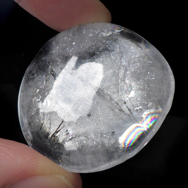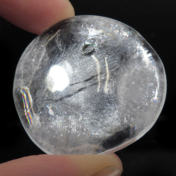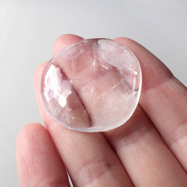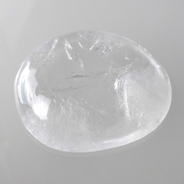 インド、プネー産のアポフィライト、タンブルです。 アポフィライトは、柱状や正方錘状の結晶を持ち、ひとつひとつの結晶が複雑に入り組んだ群晶が水晶とは違う神々しい輝きを魅せてくれます。透明度が非常に高くキラキラ輝き神秘的でとてもきれいです。