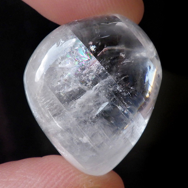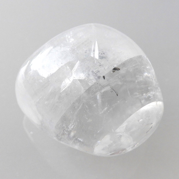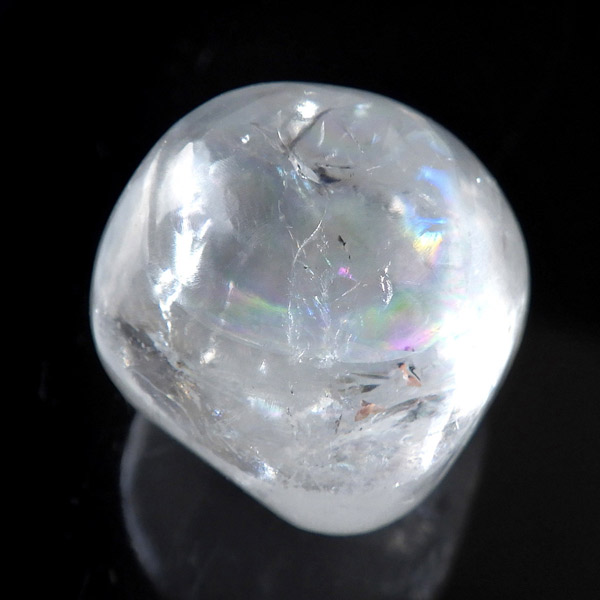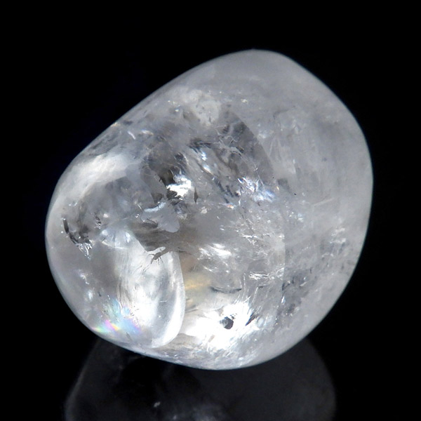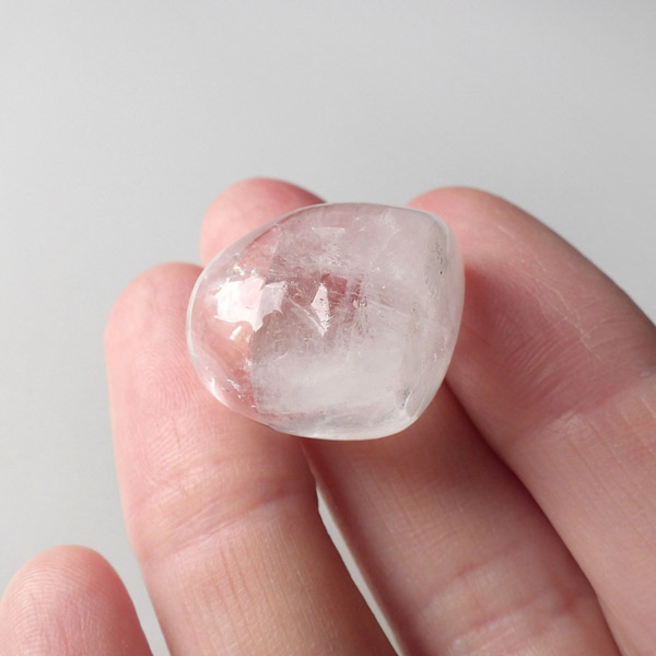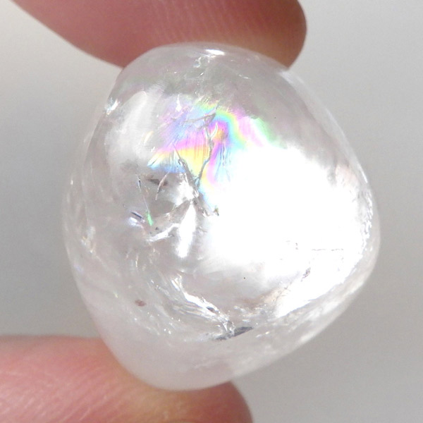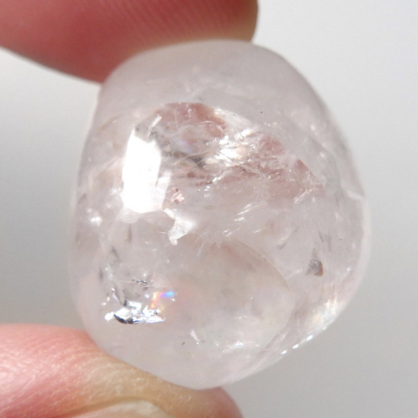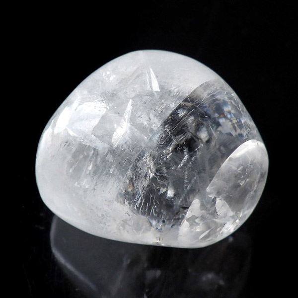 インド、プネー産のアポフィライト、タンブルです。 アポフィライトは、柱状や正方錘状の結晶を持ち、ひとつひとつの結晶が複雑に入り組んだ群晶が水晶とは違う神々しい輝きを魅せてくれます。透明度が非常に高くキラキラ輝き神秘的でとてもきれいです。