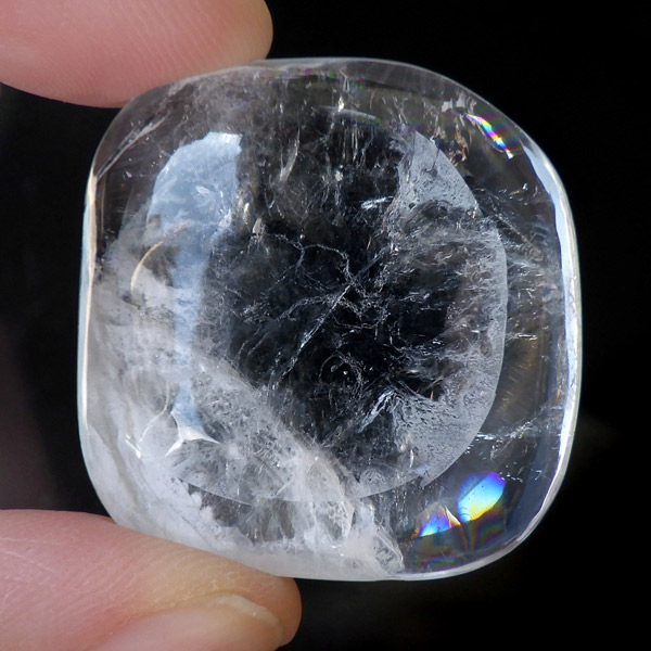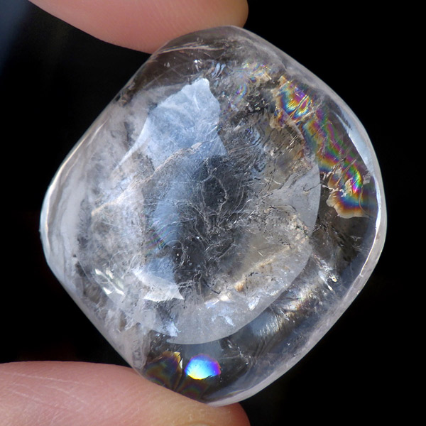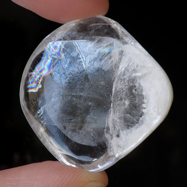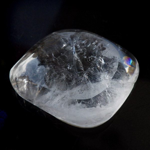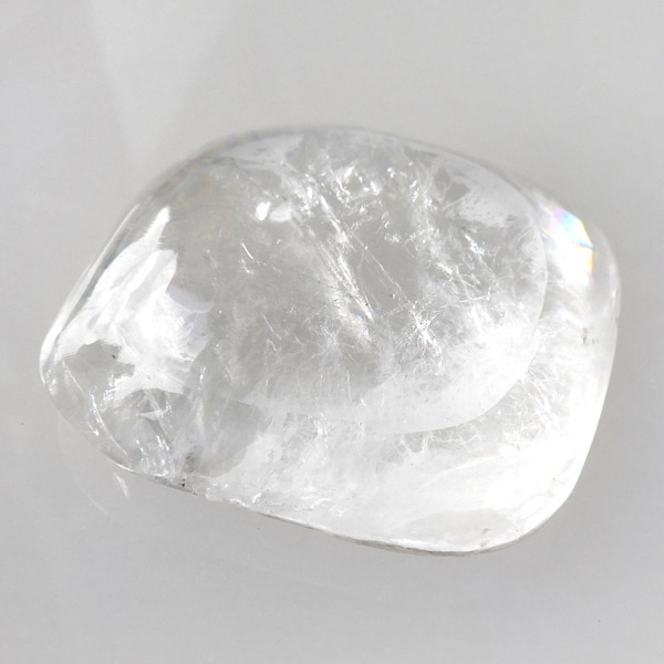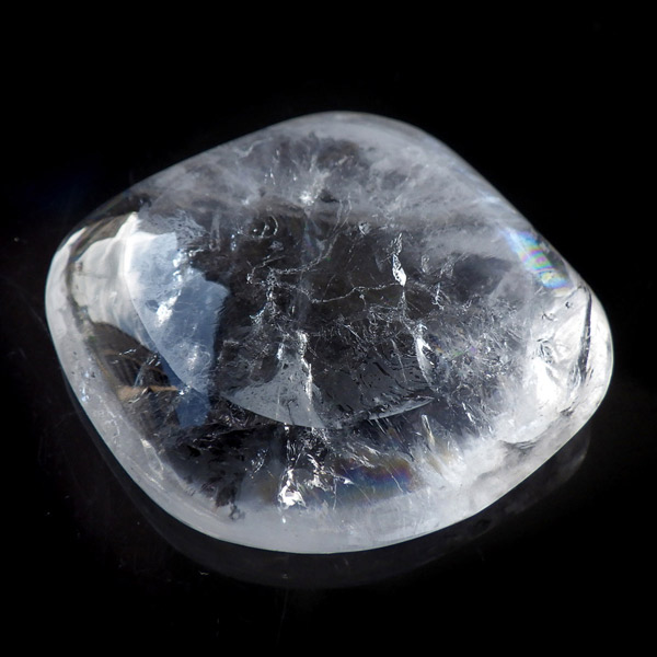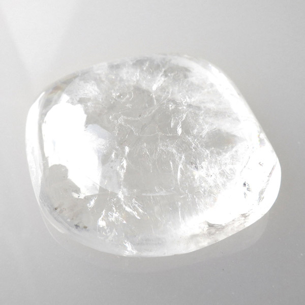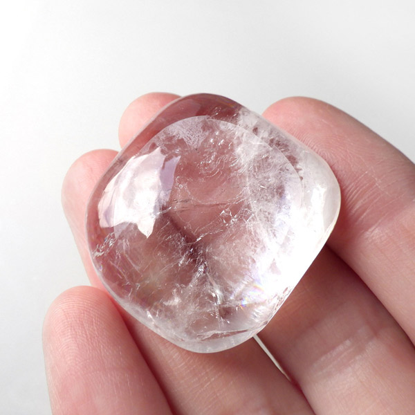 インド、プネー産のアポフィライト、タンブルです。 アポフィライトは、柱状や正方錘状の結晶を持ち、ひとつひとつの結晶が複雑に入り組んだ群晶が水晶とは違う神々しい輝きを魅せてくれます。透明度が非常に高くキラキラ輝き神秘的でとてもきれいです。