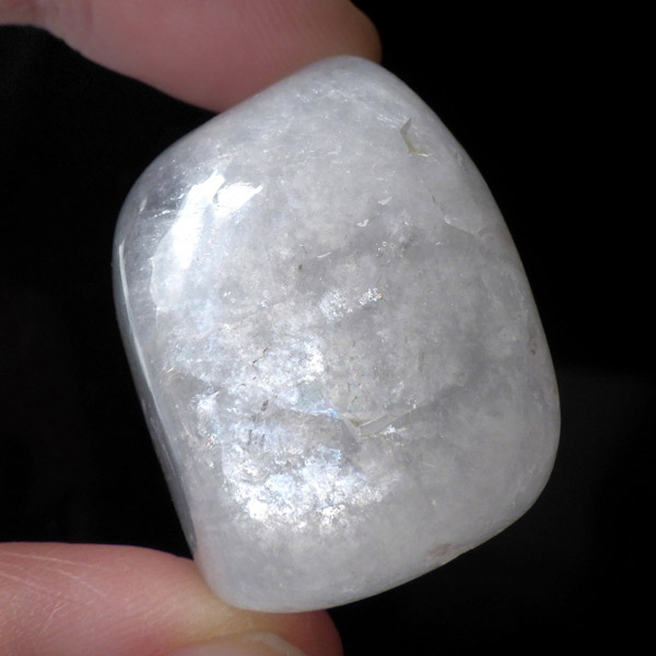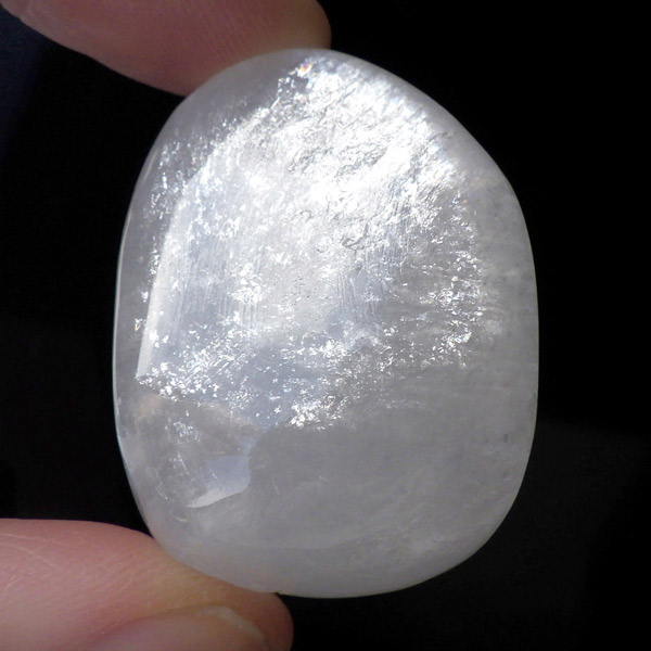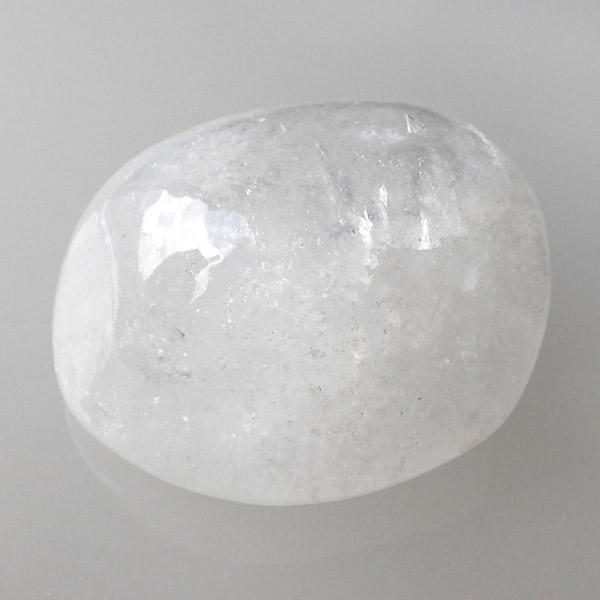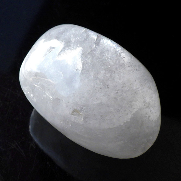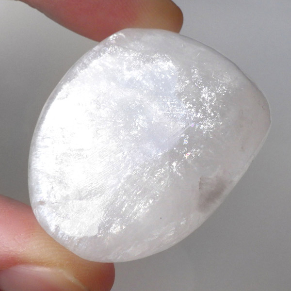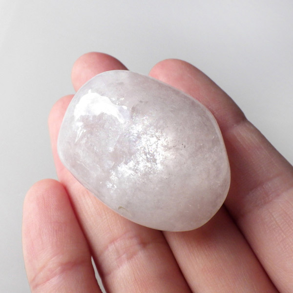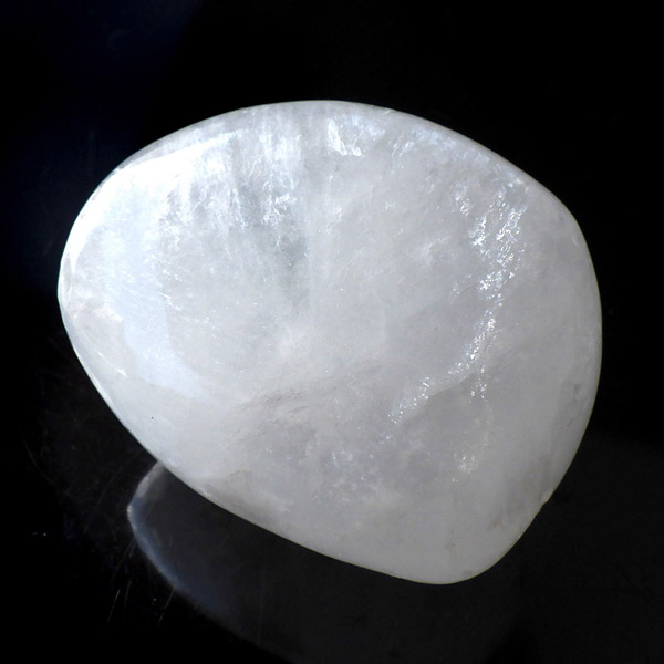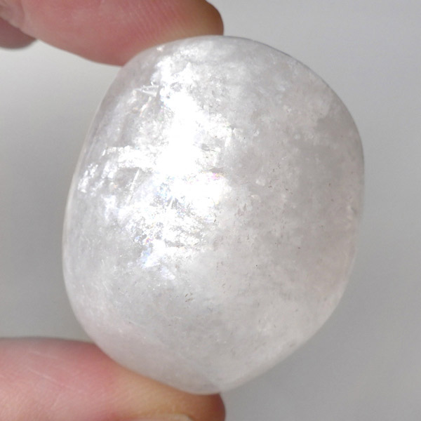 インド、プネー産のアポフィライト、タンブルです。 アポフィライトは、柱状や正方錘状の結晶を持ち、ひとつひとつの結晶が複雑に入り組んだ群晶が水晶とは違う神々しい輝きを魅せてくれます。透明度が非常に高くキラキラ輝き神秘的でとてもきれいです。