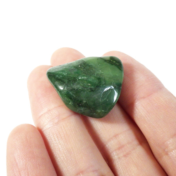 南アフリカ産のバッドストーン(アフリカンジェイド)、タンブルです。バッドストーン、バドストーン、ブッドストーンなどカタカナ表記にした際に発音の誤差があると思われます。市場ではアフリカ産の緑色の模様が混ざった石は全て「アフリカンジェイド」として出回っているため、判別が困難な場合が多いです。(当店では仕入れ元よりバッドストーンとして入荷、販売しております。)深い緑のきれいな石。アフリカンジェイドと名がつきますが、翡翠とは別の鉱石です。バッドストーンは鉱物ではなく、変成岩の一種ともいわれております。お守りとして身近に置いておくといいと言われています。