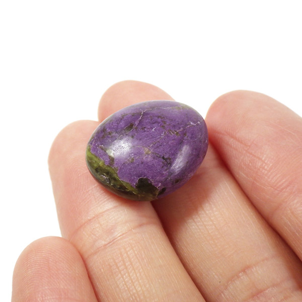 オーストラリアのタスマニア島から産出されたスティヒタイト、タンブルです。発音の関係でスティッチタイト、スティックタイトとも表記されることがあります。優しいきれいな紫色をした鉱物で周囲に平和をもたらす石とされています。グリーンのサーペンティンと一緒に産出されることもあり、それらはアトランティサイトと呼ばれています。