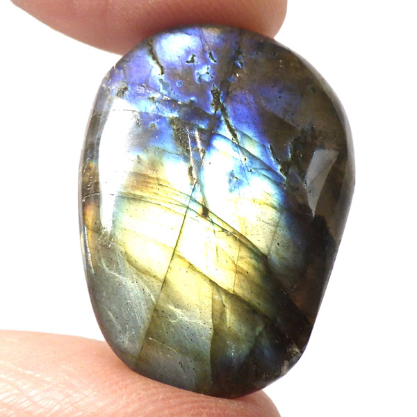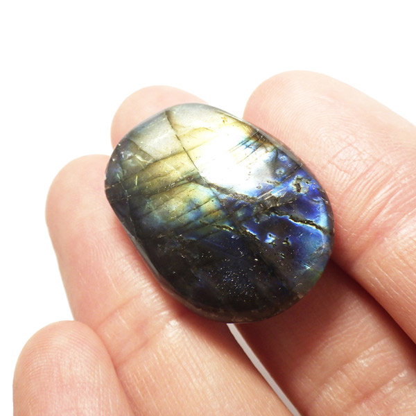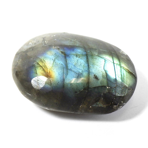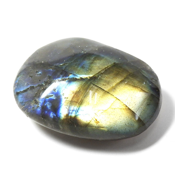 マダガスカル産のラブラドライト、タンブルです。ラブラドライトは見る角度によってオーロラのような色彩を変えるラブラドレッセンスという美しい光を持つのが特徴です。
