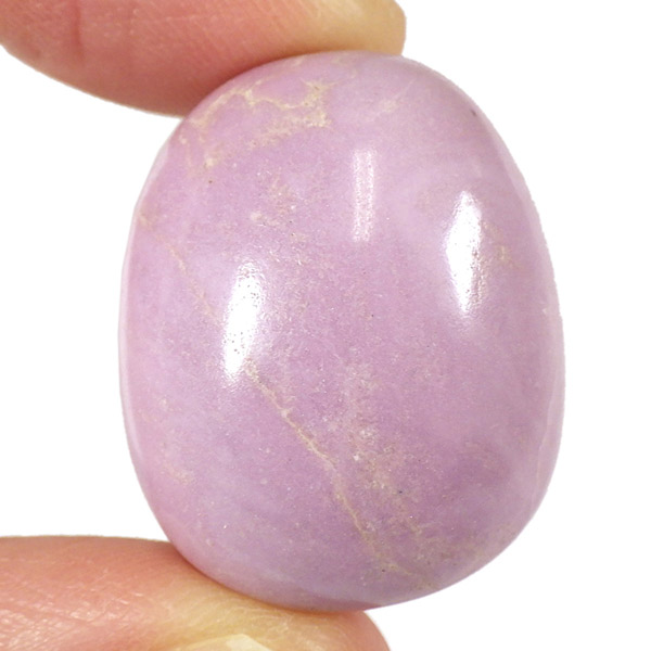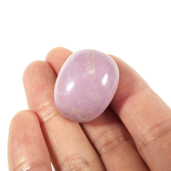 ブラジル産のフォスフォシデライト、タンブルです。淡い紫色の石で透明感はありません。ピンクから紫に変化していく途中の色、と表現した方がしっくりくるような色味です。 硬度は比較的低く劈開性(へきかいせい)があります。 劈開性とは、ある特定方向に割れやすい特徴のことです。