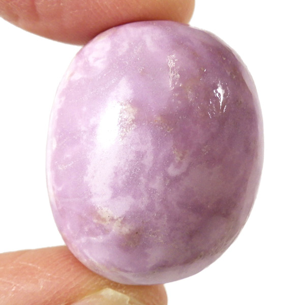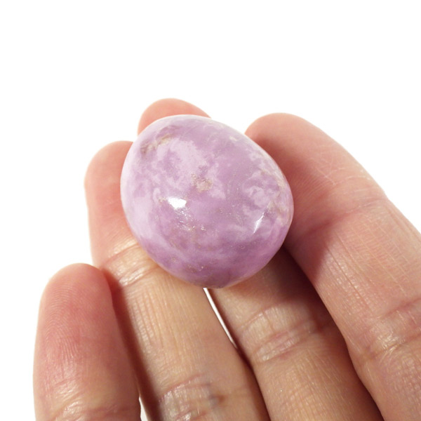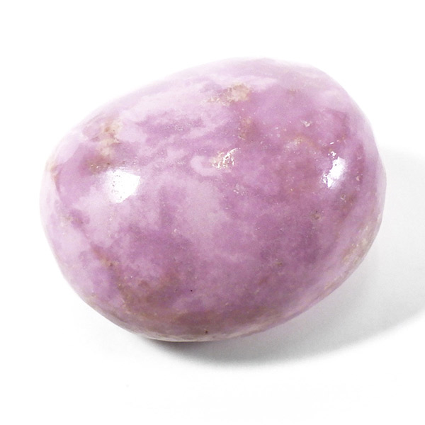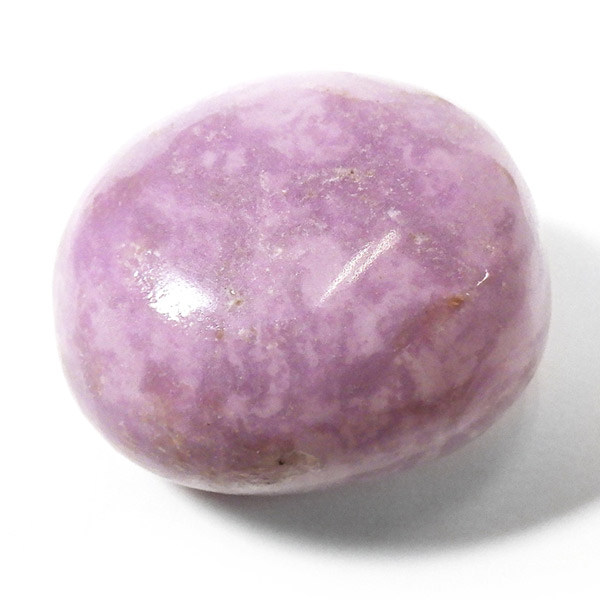ブラジル産のフォスフォシデライト、タンブルです。淡い紫色の石で透明感はありません。ピンクから紫に変化していく途中の色、と表現した方がしっくりくるような色味です。 硬度は比較的低く劈開性(へきかいせい)があります。 劈開性とは、ある特定方向に割れやすい特徴のことです。