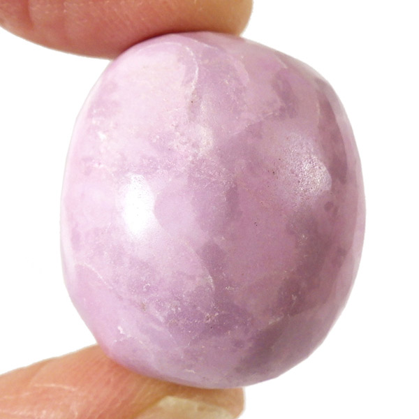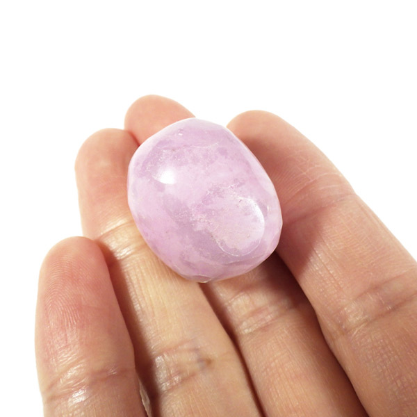 ブラジル産のフォスフォシデライト、タンブルです。淡い紫色の石で透明感はありません。ピンクから紫に変化していく途中の色、と表現した方がしっくりくるような色味です。 硬度は比較的低く劈開性(へきかいせい)があります。 劈開性とは、ある特定方向に割れやすい特徴のことです。