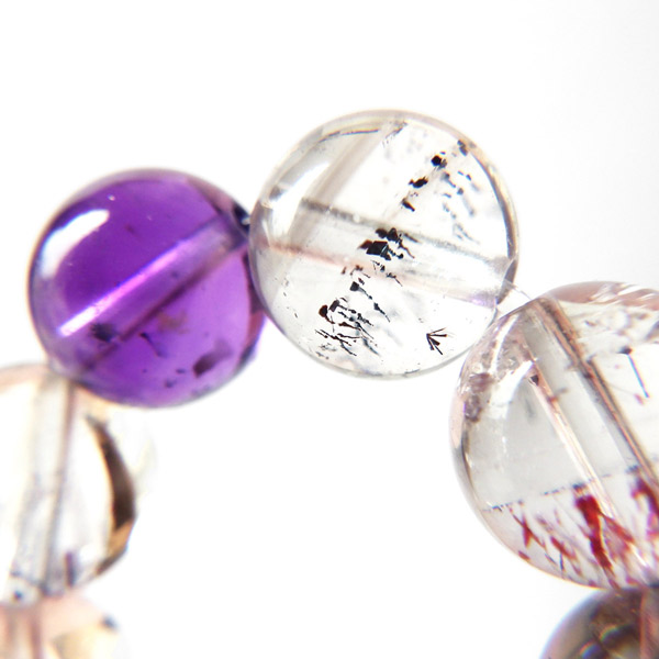 スーパーセブンを加工して仕上げたブレスレットです。 透明度が非常に高く、内包物がはっきりと見られます。一粒一粒の結晶の煌めきがそれぞれとても美しいです。