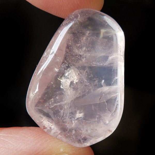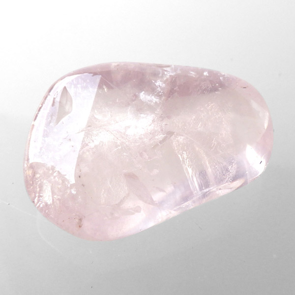 マダガスカル産のピンクジラソルクォーツ、タンブルです。ジラソルクォーツとはミルキークォーツの仲間で、マダガスカル特有の乳白色の光沢感のある水晶のことです。クォーツでありながらムーンストーンのような透明感があることが特徴で、カットの仕方によっては、独特のスター効果が現れます。アルミニウムやチタンの含有によって、薄っすらとピンク色になるものもあり、それをピンクジラソルクォーツと呼びます。ピンクジラソルは、スターローズクォーツと近縁で、酸化の具合でホワイトのミルキークォーツとの中間に位置する鉱物です。