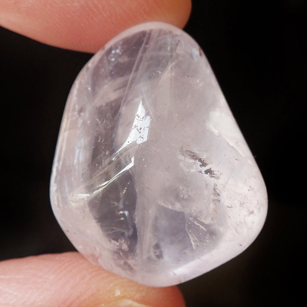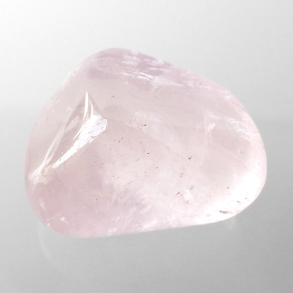 マダガスカル産のピンクジラソルクォーツ、タンブルです。ジラソルクォーツとはミルキークォーツの仲間で、マダガスカル特有の乳白色の光沢感のある水晶のことです。クォーツでありながらムーンストーンのような透明感があることが特徴で、カットの仕方によっては、独特のスター効果が現れます。アルミニウムやチタンの含有によって、薄っすらとピンク色になるものもあり、それをピンクジラソルクォーツと呼びます。ピンクジラソルは、スターローズクォーツと近縁で、酸化の具合でホワイトのミルキークォーツとの中間に位置する鉱物です。