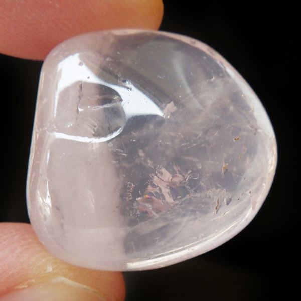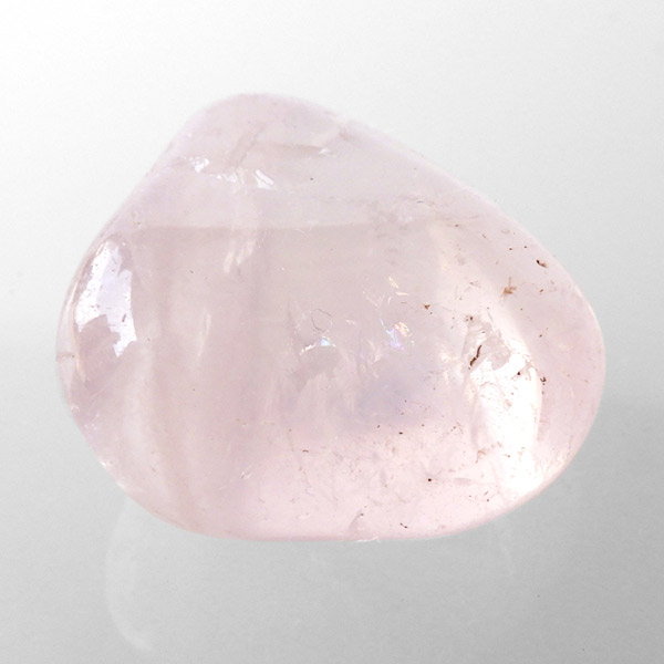 マダガスカル産のピンクジラソルクォーツ、タンブルです。ジラソルクォーツとはミルキークォーツの仲間で、マダガスカル特有の乳白色の光沢感のある水晶のことです。クォーツでありながらムーンストーンのような透明感があることが特徴で、カットの仕方によっては、独特のスター効果が現れます。アルミニウムやチタンの含有によって、薄っすらとピンク色になるものもあり、それをピンクジラソルクォーツと呼びます。ピンクジラソルは、スターローズクォーツと近縁で、酸化の具合でホワイトのミルキークォーツとの中間に位置する鉱物です。