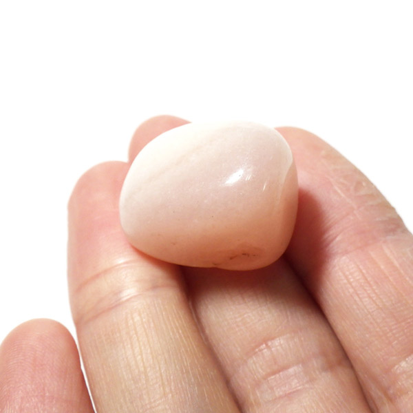 インド産のピーチクォーツ、タンブルです。ピーチクォーツはその名の通り、優しい桃色に色付いたクォーツのことです。ローズクォーツともまた違った色合いです。ピーチアベンチュリンとして流通しているものと同じかと思いますが、アベンチュレッセンスはありませんのでピーチクォーツとしております。ピーチクォーツは鉄由来のクォーツ(ファイアークォーツ、ヘマタイトインクォーツ、タンジェリンクォーツ、ゴールデンヒーラークォーツ)と構成が非常によく似ていますが、ピンクオレンジの桃色を呈するという色味によって区別して呼んでいます。優しく色付いた水晶でとても可愛らしいタンブルです。