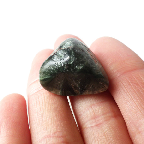 セラフィナイトは「天使の羽」という語源があり、繊細なエネルギーを持つ石です。 持ち主の魂を呼び起こし、精神を上へと導いてくれるパワーがあるといわれています。自分が苦手だと思う人ともコミュニケーションが容易にとれるようになり、対人関係をスムーズにする働きがあるといわれます。性格の違う人に対してうまく協調できない人や、集団の中にうまくとけこめない人には、コミュニケーションが上手くとれるようサポートしてくれるでしょう。