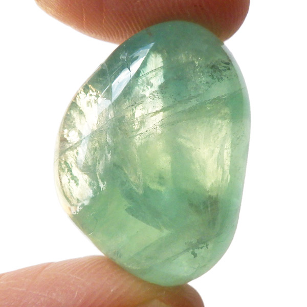 マルチカラーフローライト、タンブルです。 大変透明度が高く、いろいろなカラーの色彩が見られます。蛍石の名前の通り、様々な角度からその美しさを楽しむことができます。光にかざして透かすと、カラーが複雑に入り乱れており、そのグラデーションが大変きれいです。
