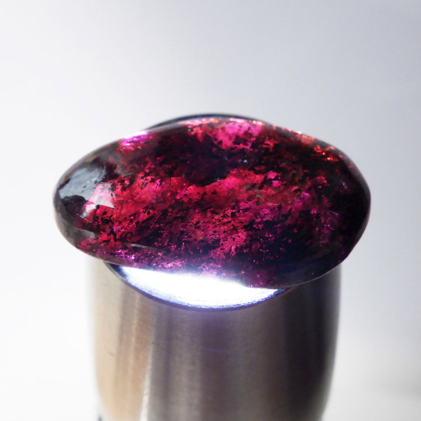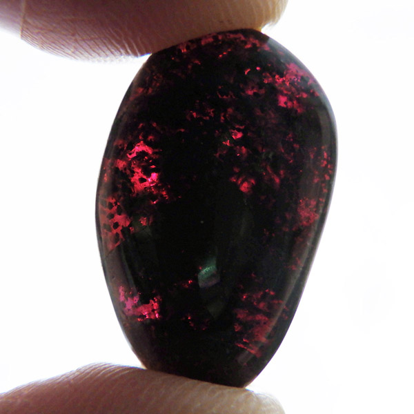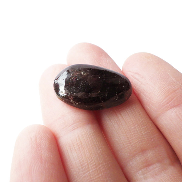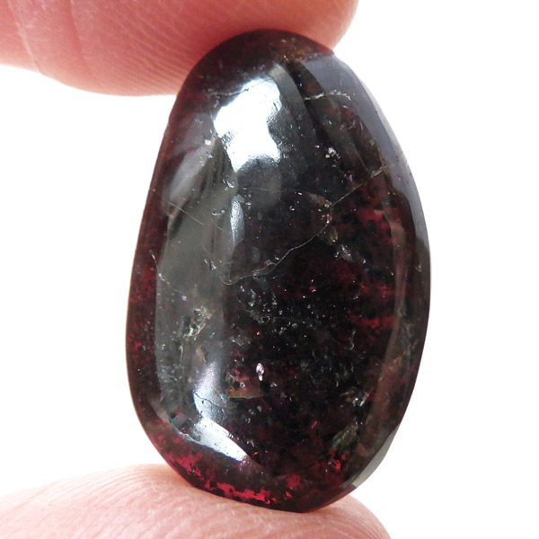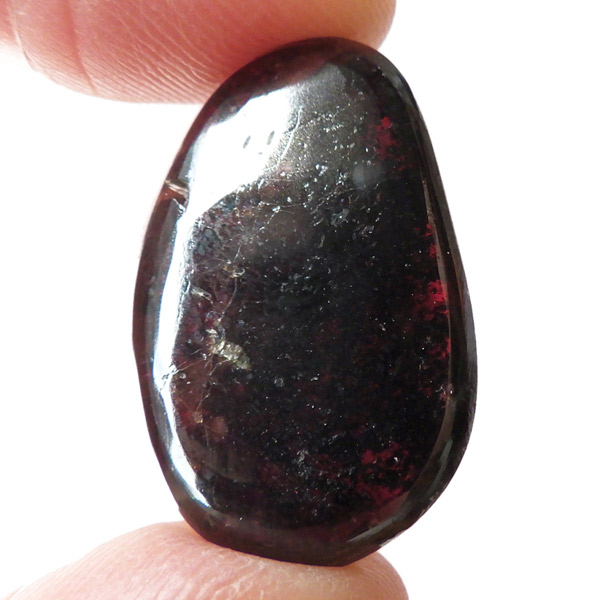 インド産ロードライトガーネット、タンブルです。ロードライトガーネットは紫帯びた赤のワインレッド色が非常に美しいガーネットのことです。アルマンディン(鉄礬柘榴石)とパイロープ(苦礬柘榴石)の混合ガーネットであり、貴重で高価、そして数少ないパワーストーンであることから、人気がとても高いストーンです。光に透かすとよりきれいな色彩が現れます。