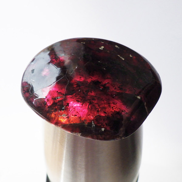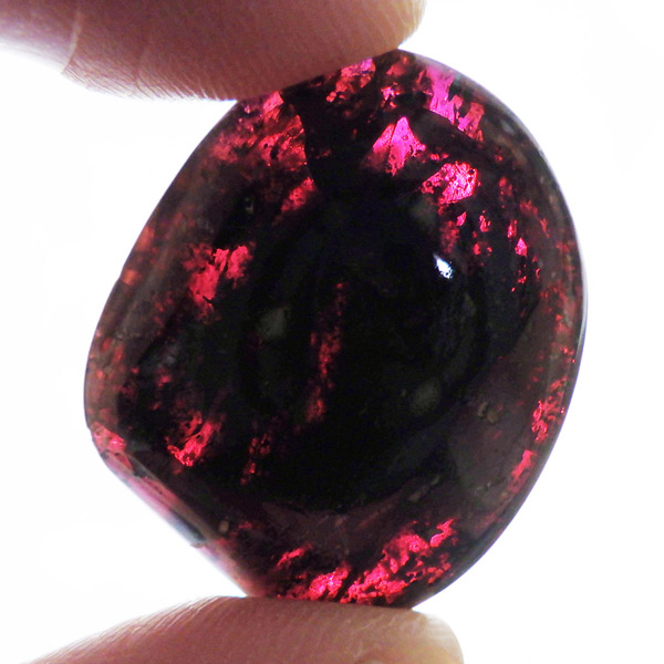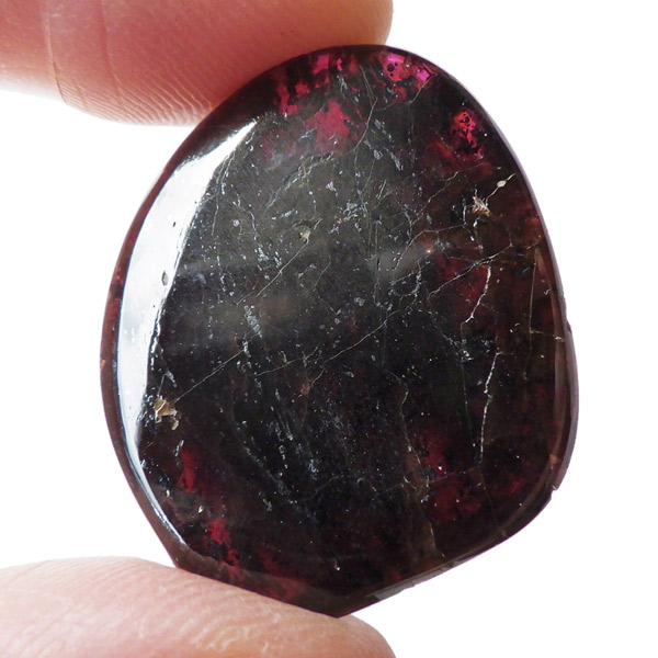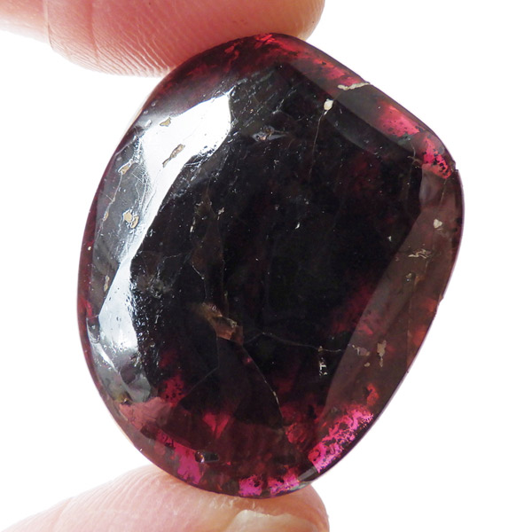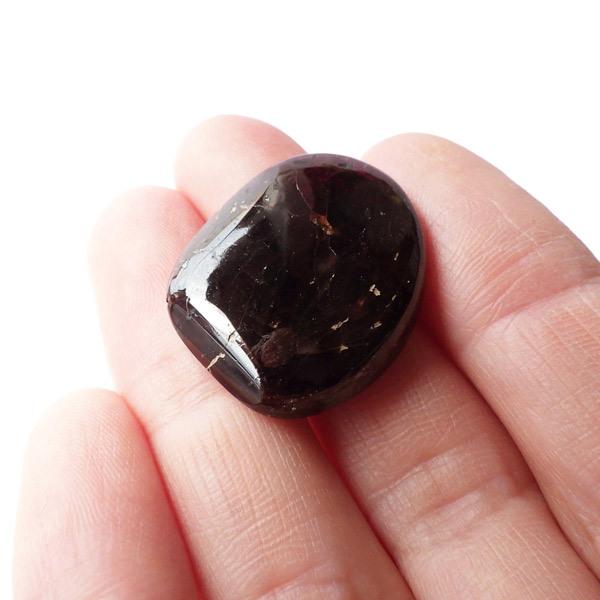 インド産ロードライトガーネット、タンブルです。ロードライトガーネットは紫帯びた赤のワインレッド色が非常に美しいガーネットのことです。アルマンディン(鉄礬柘榴石)とパイロープ(苦礬柘榴石)の混合ガーネットであり、貴重で高価、そして数少ないパワーストーンであることから、人気がとても高いストーンです。光に透かすとよりきれいな色彩が現れます。