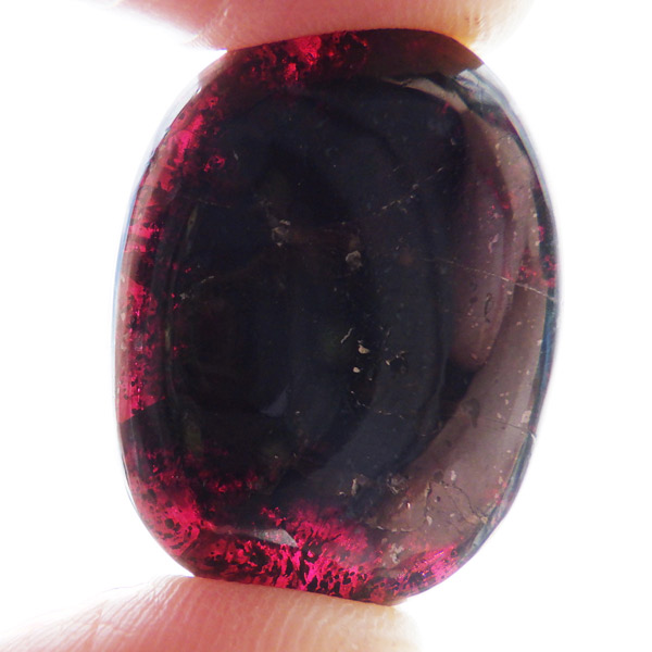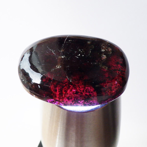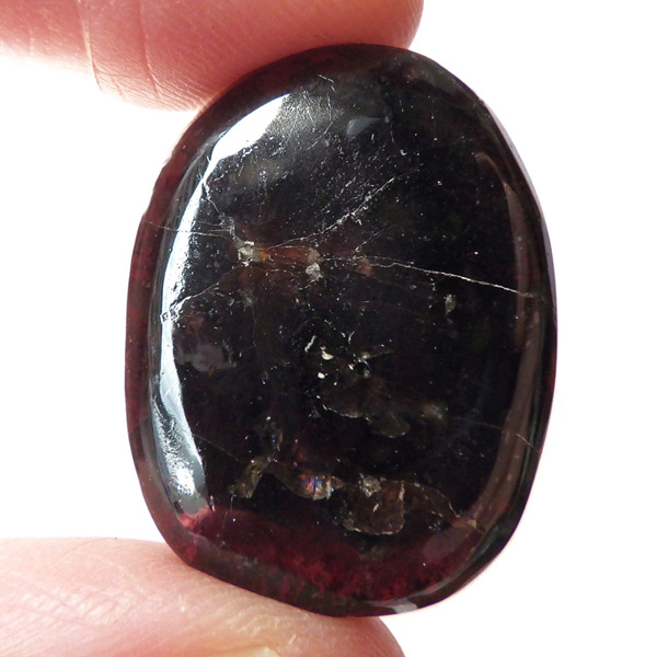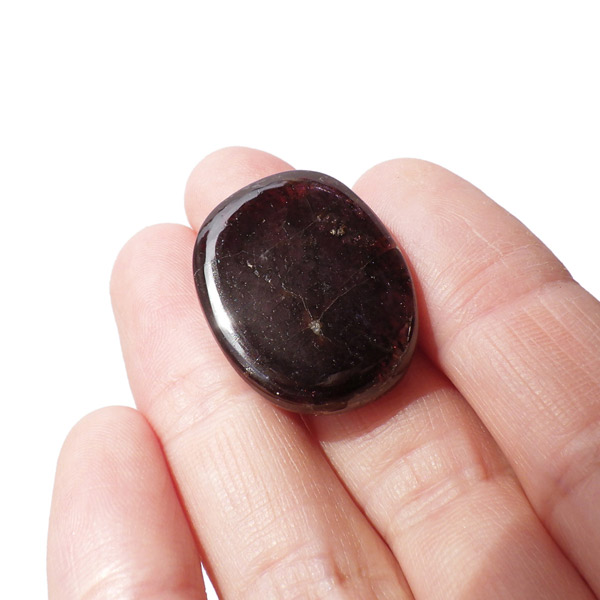 インド産ロードライトガーネット、タンブルです。ロードライトガーネットは紫帯びた赤のワインレッド色が非常に美しいガーネットのことです。アルマンディン(鉄礬柘榴石)とパイロープ(苦礬柘榴石)の混合ガーネットであり、貴重で高価、そして数少ないパワーストーンであることから、人気がとても高いストーンです。光に透かすとよりきれいな色彩が現れます。