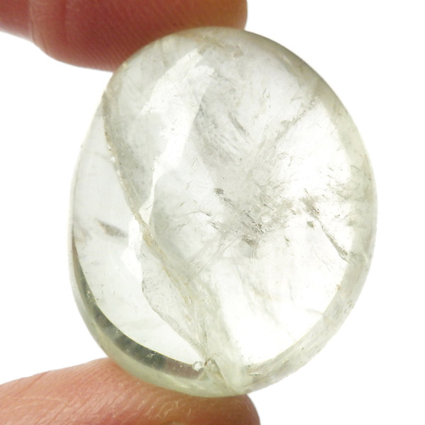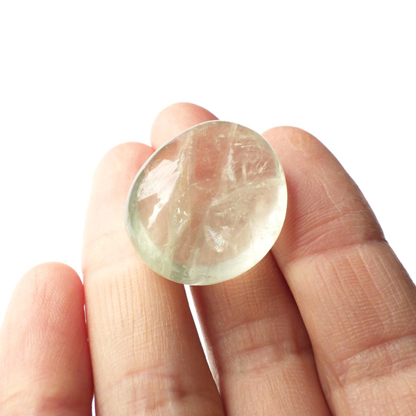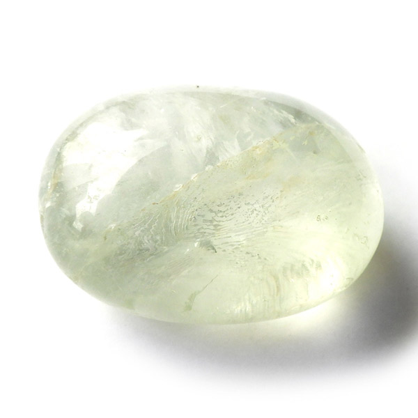 ブラジル・バイーア州産のプラシオライト、タンブルです。発音の関係でプラシオライト又はプラジオライトと表記されます。プラシオライトはアメジストを加熱処理することでグリーンに変化するのでグリーンアメジストとも呼ばれております。通常アメジストは加熱処理を加えると黄色に変化するのですが、ごく稀にグリーンに変化するものをプラシオライト(グリーンアメジスト)と呼んでいます。抜群の透明度にほのかなグリーンが優しく入っています。
