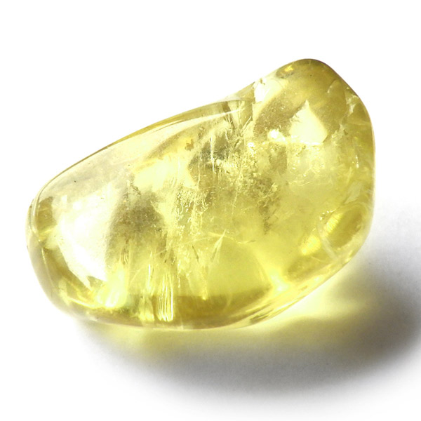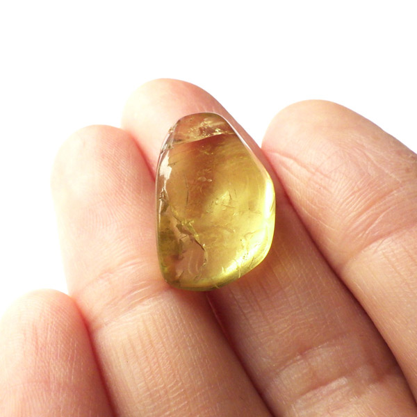 メキシコ産のイエローアパタイトタンブルです。多く流通しているイエローアパタイトは、小指に乗るくらいの小さな原石ですが、このタンブルはその大きさをはるかに上回る大きさです。 タンブルに加工できるほどのサイズは大変貴重です。また、加工すれば宝石になるようなきれいなタンブルです。結晶は透明でしっかりとしたイエローカラー、角度によってキラりと輝きます。とても高品質で貴重な一点です。