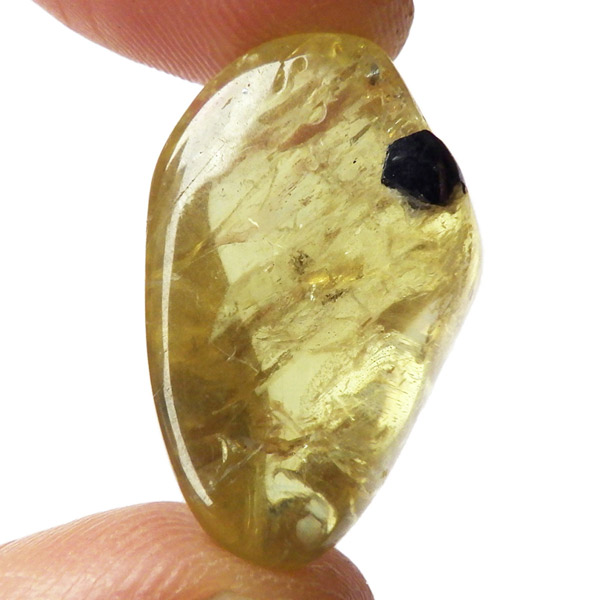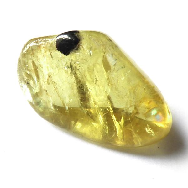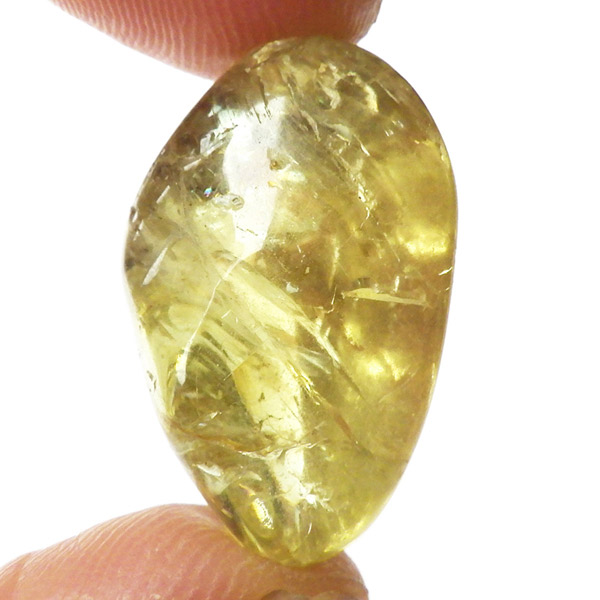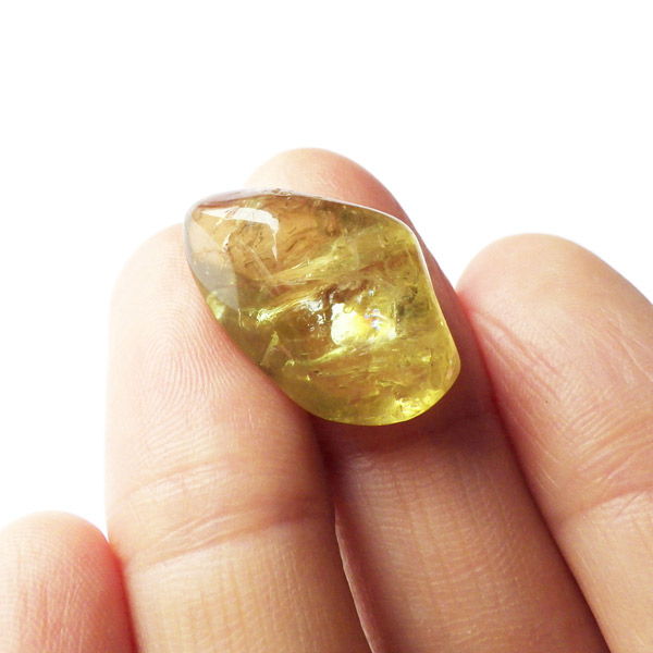 メキシコ産のイエローアパタイトタンブルです。多く流通しているイエローアパタイトは、小指に乗るくらいの小さな原石ですが、このタンブルはその大きさをはるかに上回る大きさです。 タンブルに加工できるほどのサイズは大変貴重です。また、加工すれば宝石になるようなきれいなタンブルです。結晶は透明でしっかりとしたイエローカラー、角度によってキラりと輝きます。とても高品質で貴重な一点です。