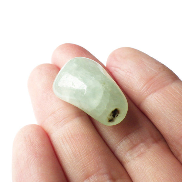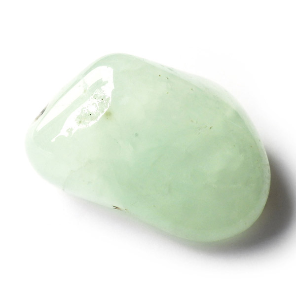 南アフリカ産のプレナイト、タンブルです。プレナイトは、淡い青緑から黄色にかけての色合いの石。1788年に南アフリカで初めてこの石を発見したフォン・プレーン大佐にちなんで名付けられました。葡萄石という和名は産出時に見た目が葡萄のようであったことから名づけられました。今回は黄色味がかったものではなく、発色の良いミルキーな青よりの緑のプレナイトをご用意いたしました。優しい色合いで心が落ち着きます。