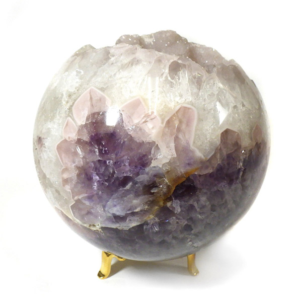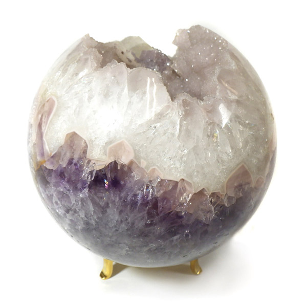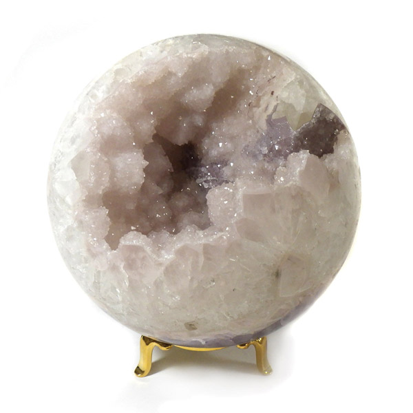 ブラジル産、ジオードアメジスト丸玉です。小さな結晶がキラキラ輝き、きれいな一点です。側面にカルサイトが共生しており、白、ピンク、紫の結晶を楽しむ事ができます。