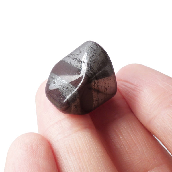 ブラジルの縞状鉄鉱層から産出するアンセストラライトのタンブルです。アンセストラライトはレッドジャスパーとヘマタイトからなる一部地域から採れる石のこと。レッドジャスパーの赤は元々ヘマタイト(赤鉄鉱)によるものです。粒状鉄鉱層からスペキュラーヘマタイトのようにキラキラとしたヘマタイトが産出します。27億年程前の地層の石ということでアンセストラライト(祖先石)という愛称でも呼ばれております。クリムゾンレッドとシルバーの縞模様が面白く、キラキラとしたヘマタイトも魅力的です。