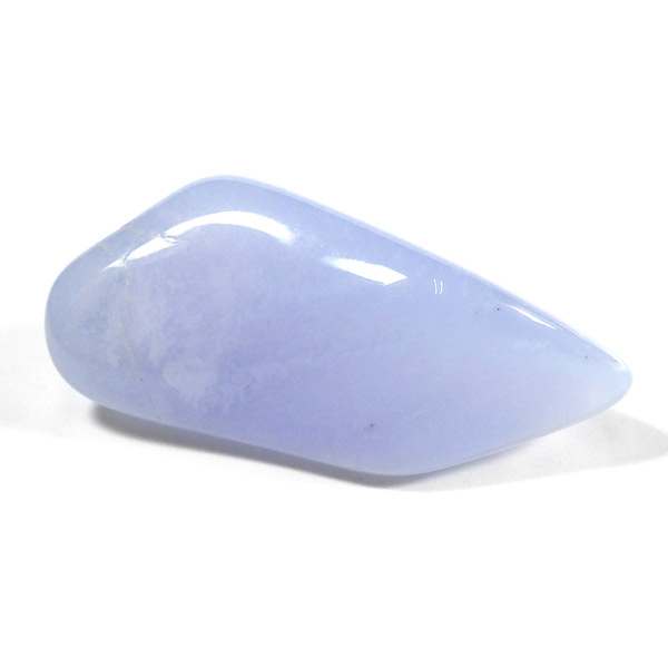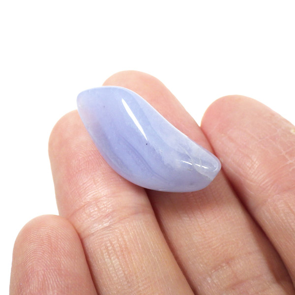 南アフリカ共和国産のブルーレースアゲート、タンブルです。ブルーレースアゲートの和名は「空色縞瑪瑙」。 淡い水色や白色が層状に重なって、まるでレースのように見えることからこの名が付けられました。 近年、縞模様がはっきり見られるブルーレースアゲートの原石が激減しており、今では質の良いものは入手が困難になっています。