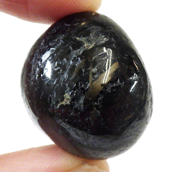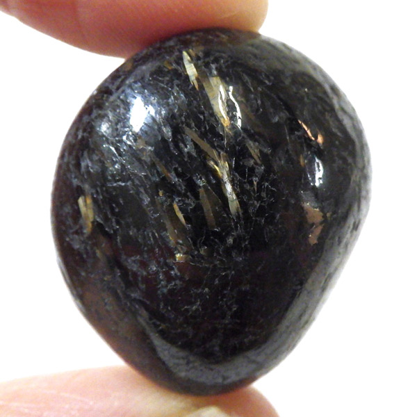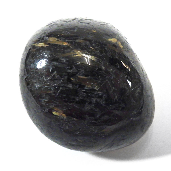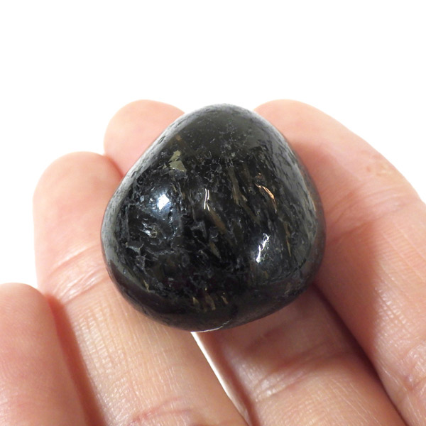 グリーンランド産の高品質ヌーマイト、タンブルです。 ヌーマイトは、1982年にグリーンランドのヌーク地方で発見され、地名に因んで名づけられました。ヌーマイト自体は30億年前から地球に存在したといわれる石で、気の遠くなるような年月を経て現代に現れた石だといわれています。和名は角閃石片麻岩。アンソフィライトやゲドライト、石英、など多様なミネラルを含んだ変成岩といわれています。一見、真っ黒い石に見えますが、光の角度によって鮮やかなゴールド、グリーン、ブルーなどのさまざまな色の閃光を示します。グリーンランド産のヌーマイトの虹色は、極微視的なアンソフィライトとゲドライトの交互の溶出ラメラ構造から反射された光の干渉によるものということです。世界で最も美しいと知られるのがグリーンランドのヌーマイトといわれています。