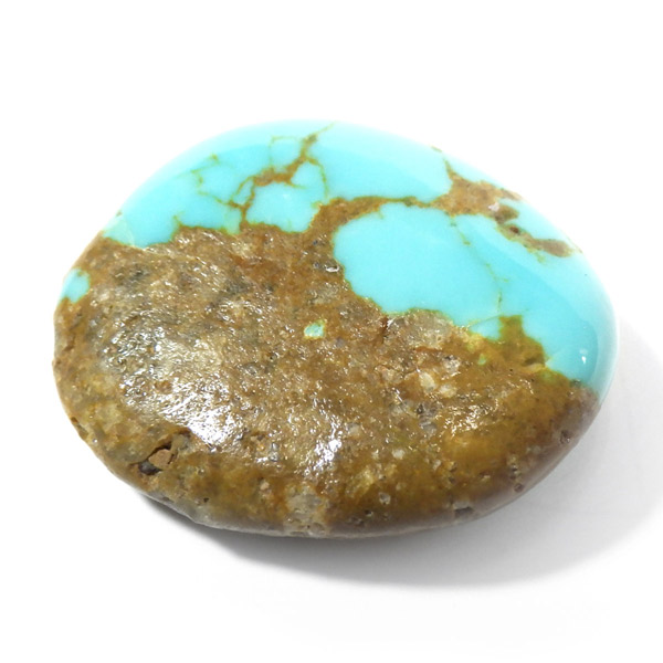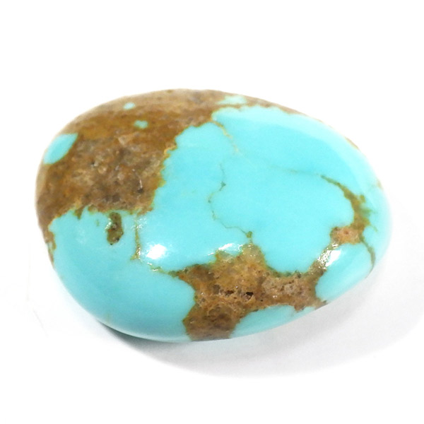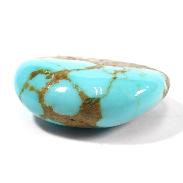 アメリカ・アリゾナ州産のキングマンターコイズ、タンブルです。キングマンターコイズはアリゾナ州キングマンでとれるターコイズのことです。ターコイズならではのターコイズブルーで全体に均一な色彩。発色が良く、母岩とのコントラストでできる模様も表情があり、おもしろいタンブルです。