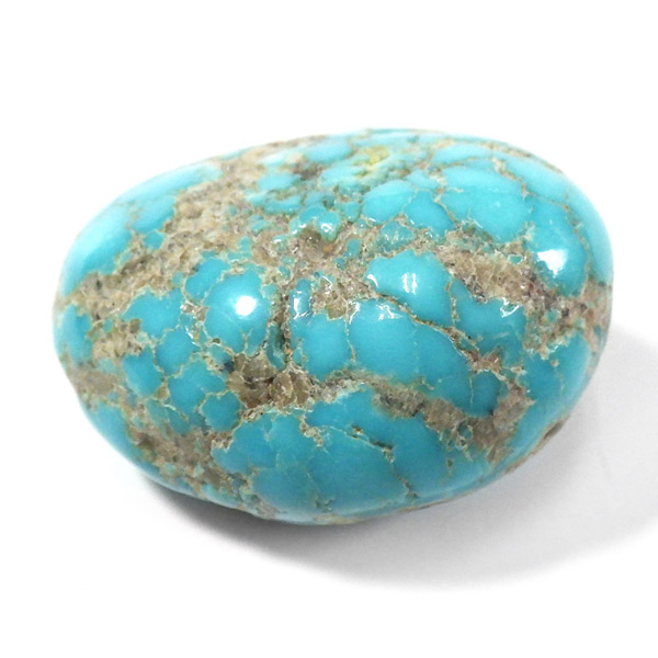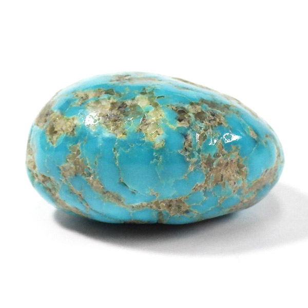 アメリカ・アリゾナ州産のキングマンターコイズ、タンブルです。キングマンターコイズはアリゾナ州キングマンでとれるターコイズのことです。ターコイズならではのターコイズブルーで全体に均一な色彩。発色が良く、母岩とのコントラストでできる模様も表情があり、おもしろいタンブルです。