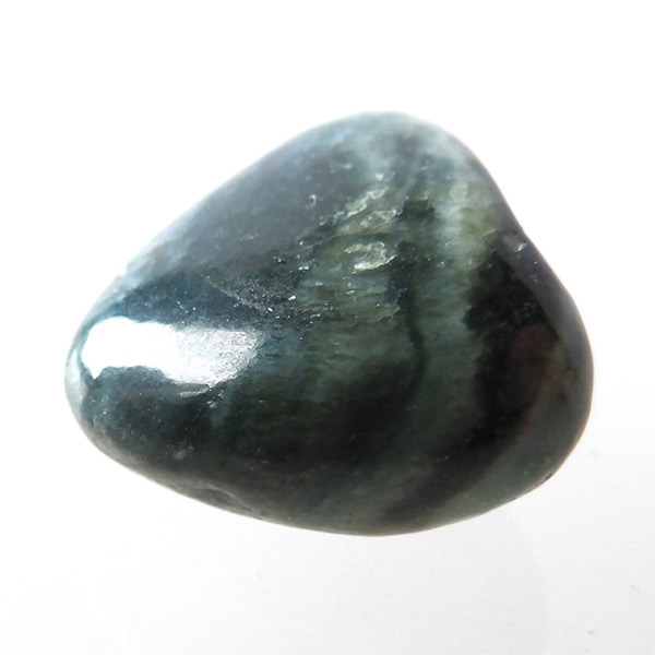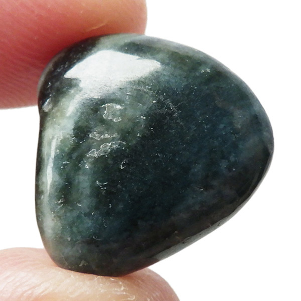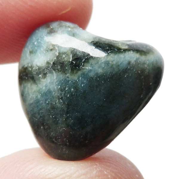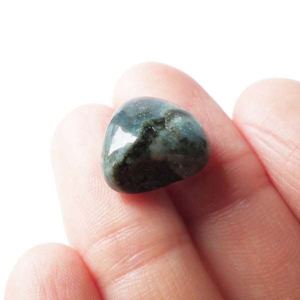 ロシア産のダイアナイト、タンブルです。 ダイアナイトはロシアのシベリアから産出される岩石で、ネフライト翡翠に似た独特のまだら模様の青を示します。石英や透輝石、青色の角閃石が混ざり合った片麻岩とされています。色はきれいなブルーから、デニムブルー。故ダイアナ妃にちなんでダイアナイトと名付けられ流通されています。