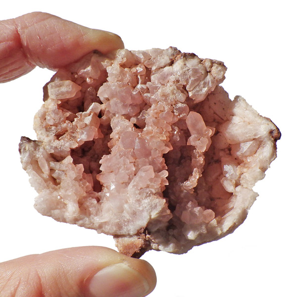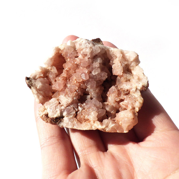 そのジオードを割ると中から通常は紫のアメジストが現れますが、稀にピンク色の結晶が出てきます。