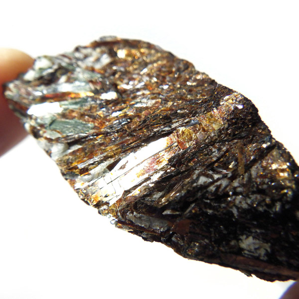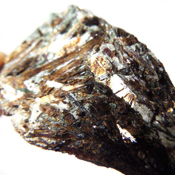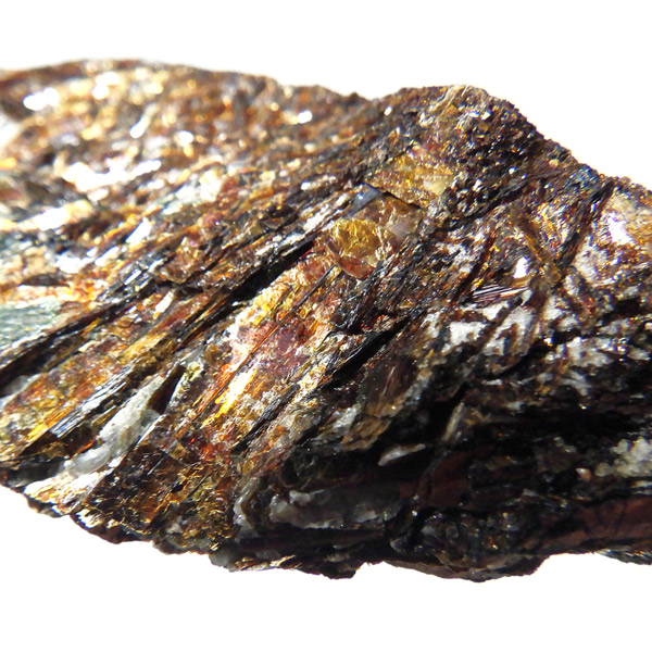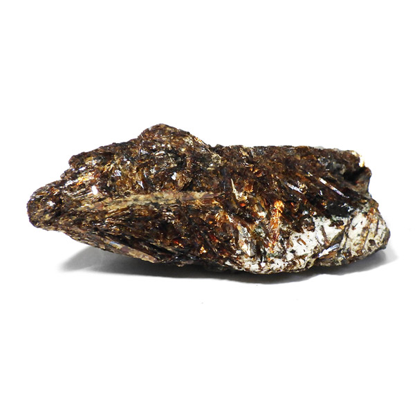 無数の針板状に伸びた結晶の形が特徴で、金属の光は「流れ星」や「太陽」をイメージさせられます。「アストロフィライト」の名前の由来は、ギリシア語の「星」と、「葉」を意味する単語を組み合わせてつけられたものです。和名は星葉石。アルバイト、エジリン、アルベゾナイト、ジルコン、アラゴナイト、ブルッカイトなどと共に産出することが多いとされています。