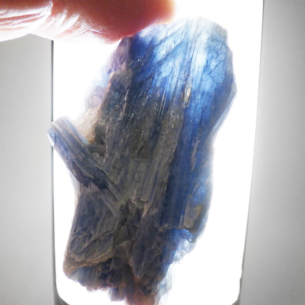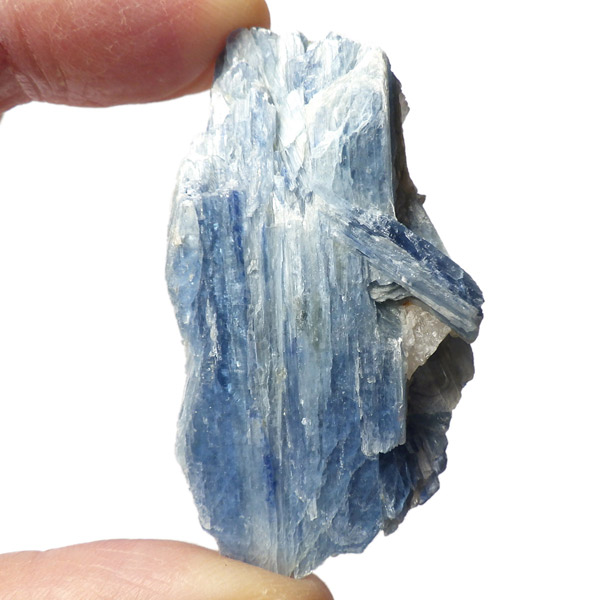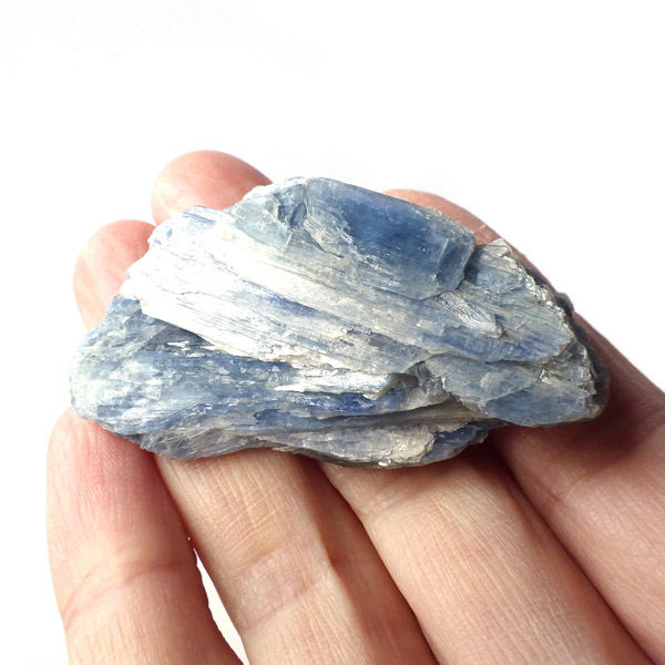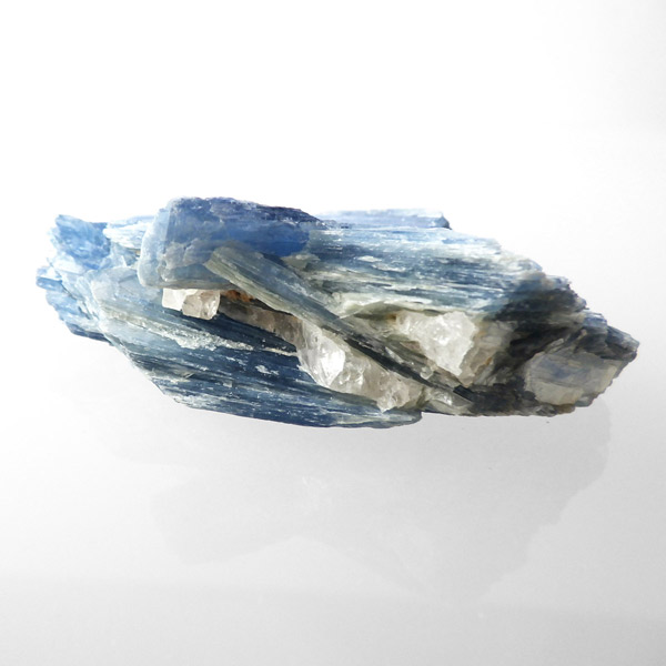 ブラジル産のカイヤナイト原石です。カイヤナイトはブルーがきれいな人気の鉱物です。柱状に伸びる結晶がうっとりする美しさを持っています。角度を変えると光を反射し、キラキラとした輝きが、これまた美しいです。